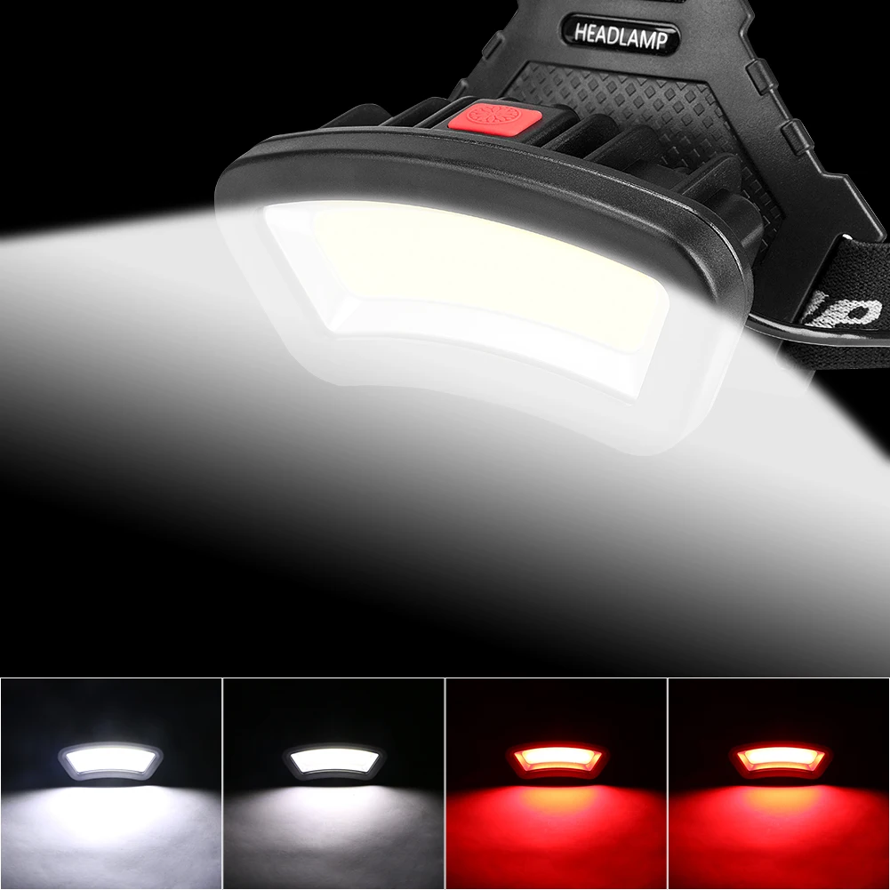 COB светодиодный налобный фонарь USB Перезаряжаемый 18650 головной светильник фонарь для кемпинга ночная рыбалка велосипедная фара Предупреждение ющий светильник для бега