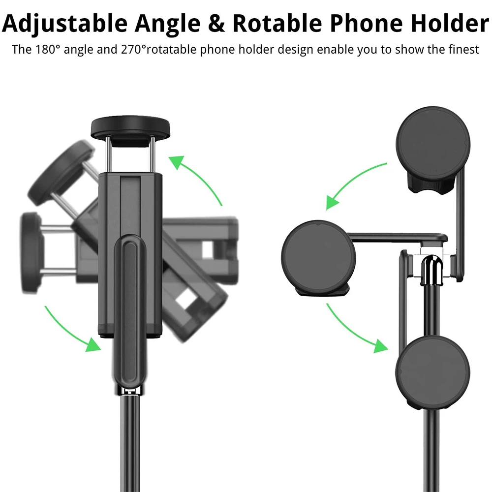 Очень хороший продукт, как видно из описания и хорошего качества. Он сильно растягивается, твердый и хорошо держит телефон. Пульт дистанционного управления работает отлично, после зарядки через usb-кабель (кабель не включен).