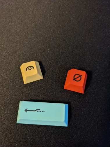Черные колпачки имеют сине-серую окраску. Некоторые из легенд не выровнены идеально. Цвета более блеклые, чем на фотографиях. Пластик хорошего качества и достаточно толстый. Товар прибыл очень быстро (17 дней в США), и за эту цену, я действительно не могу жаловаться. Возможно, некоторые из лучших колпачков для ключей, которые вы можете получить по этой цене.