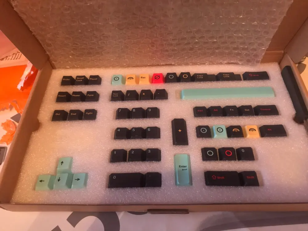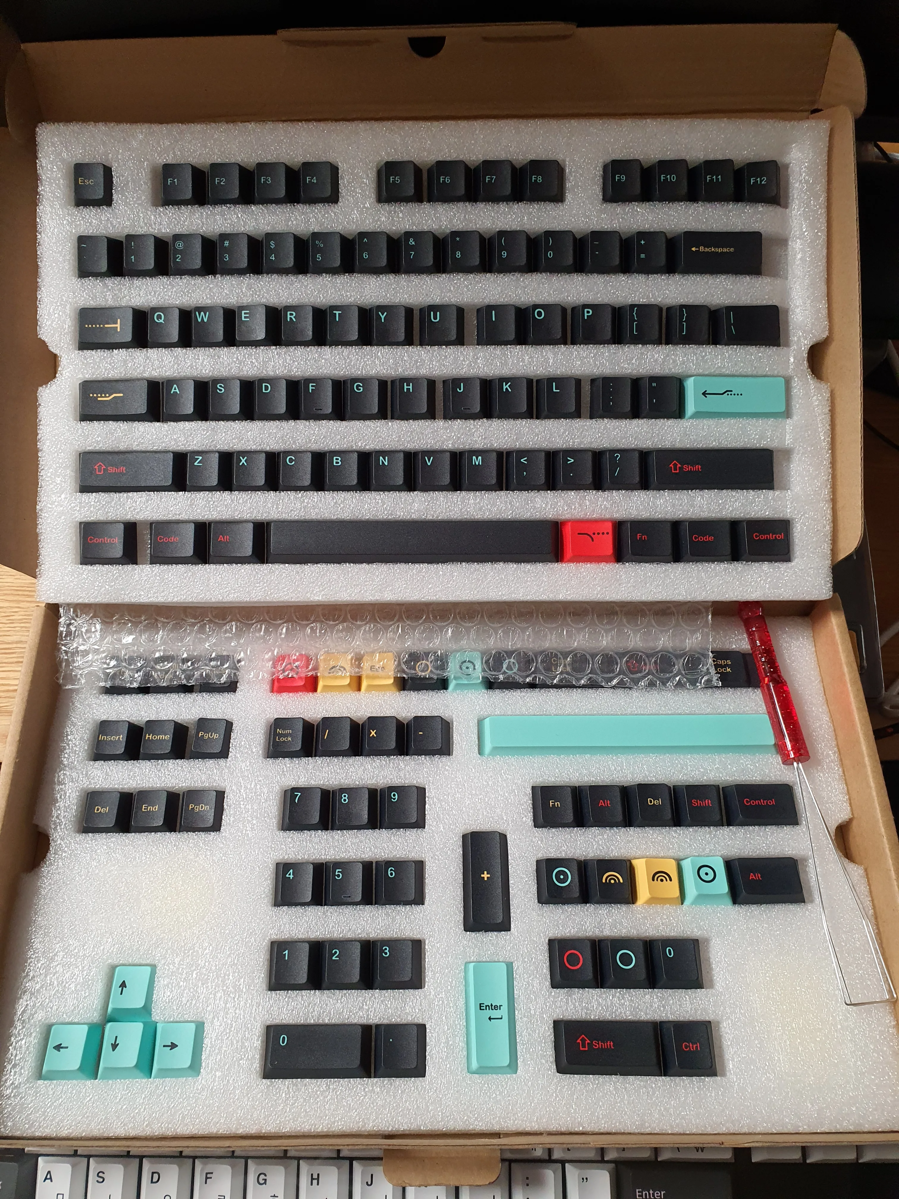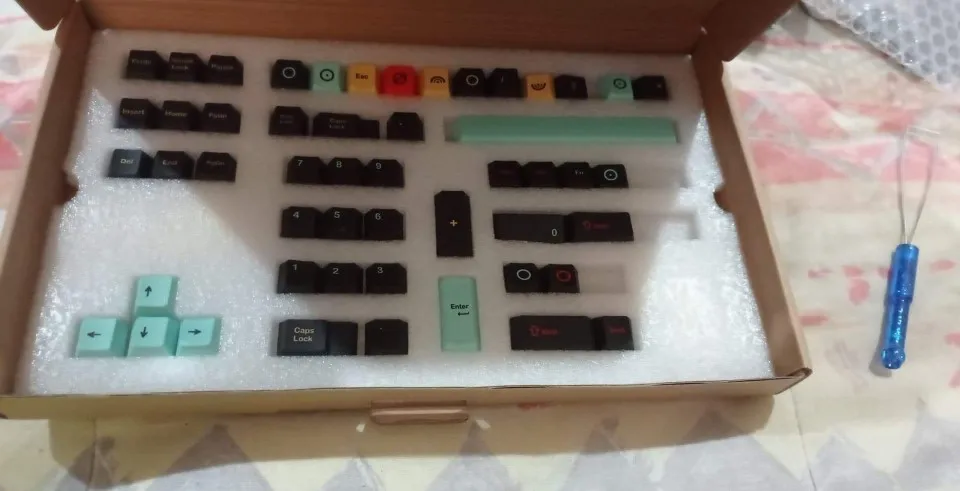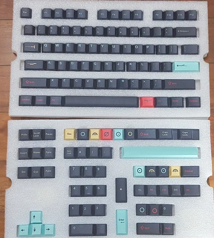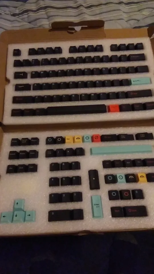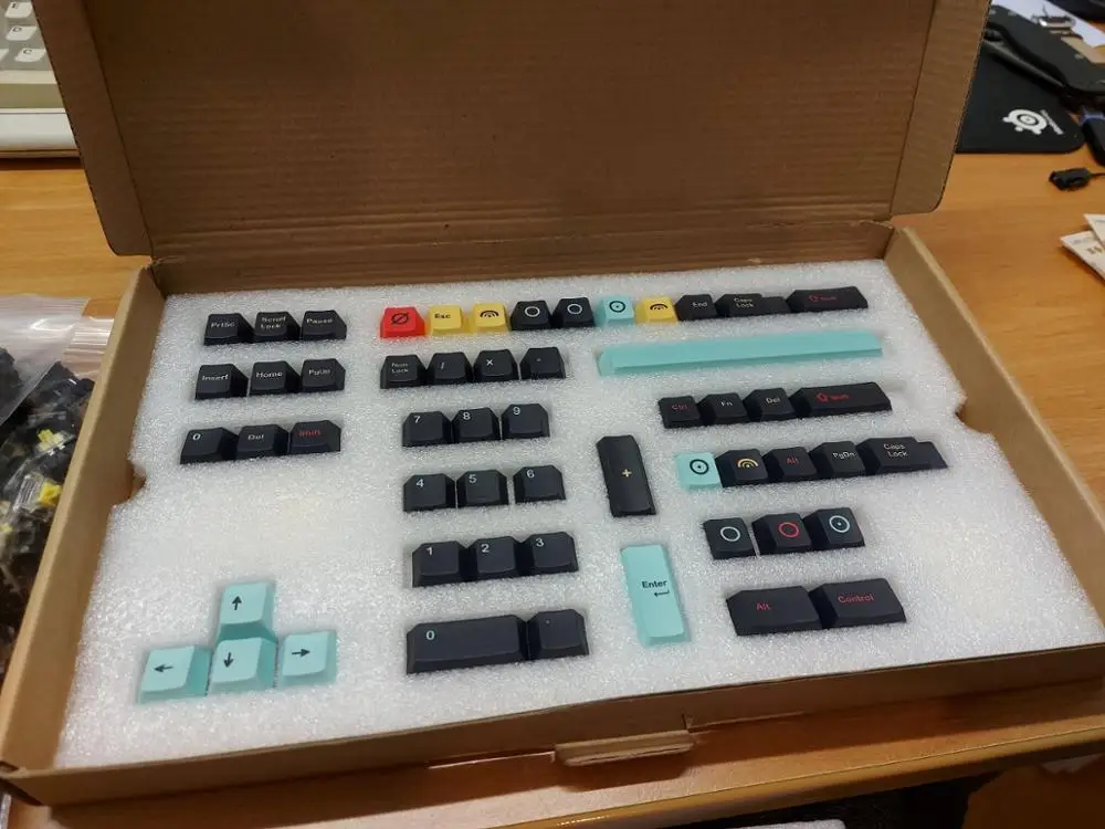 Хороший комплект по цене. Нижняя часть многих колпачков немного потертая, и горстка колпачков для ключей имеет низко сфокусированные легенды. Но, по цене, это хорошо, и в целом хорошее соотношение цены и качества. Доставка была очень медленной, но, скорее всего, является отражением внешних сил-не из-за самого магазина
