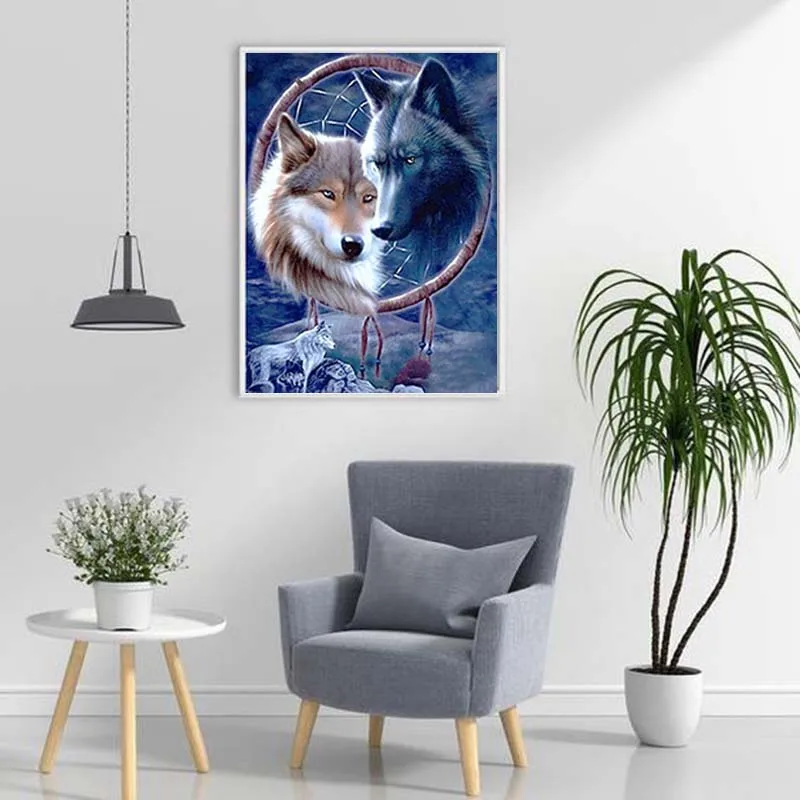 Хранитель снов с изображением волков DIY 5D алмазная живопись, вышивка крестиком, полные круглые стразы из смолы, алмазная вышивка, животное, ручное искусство на стену