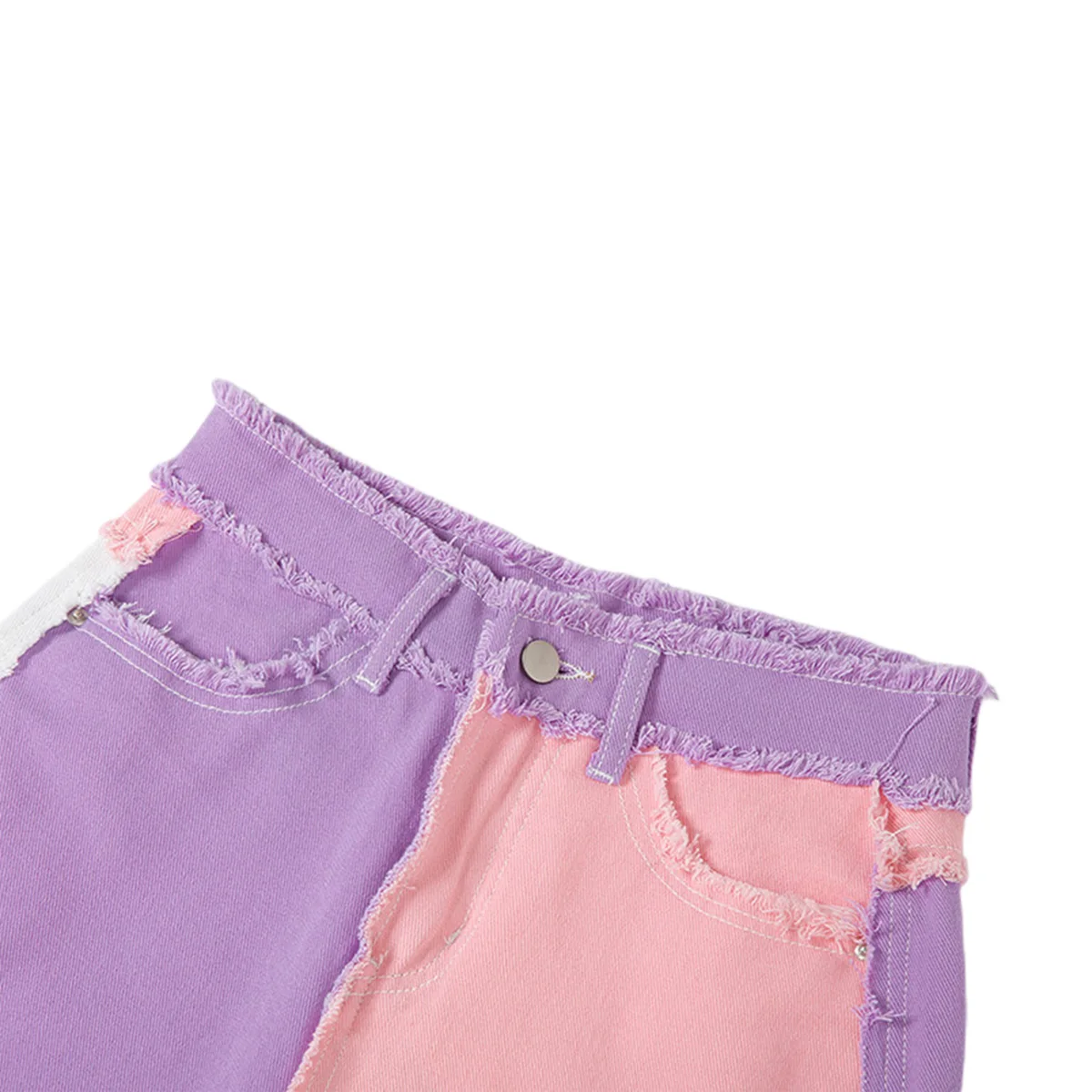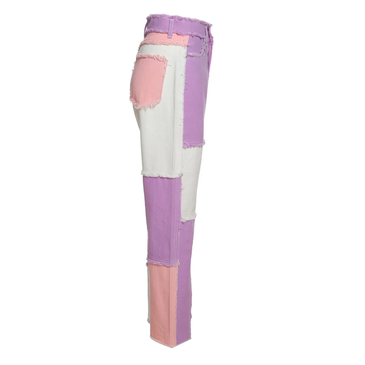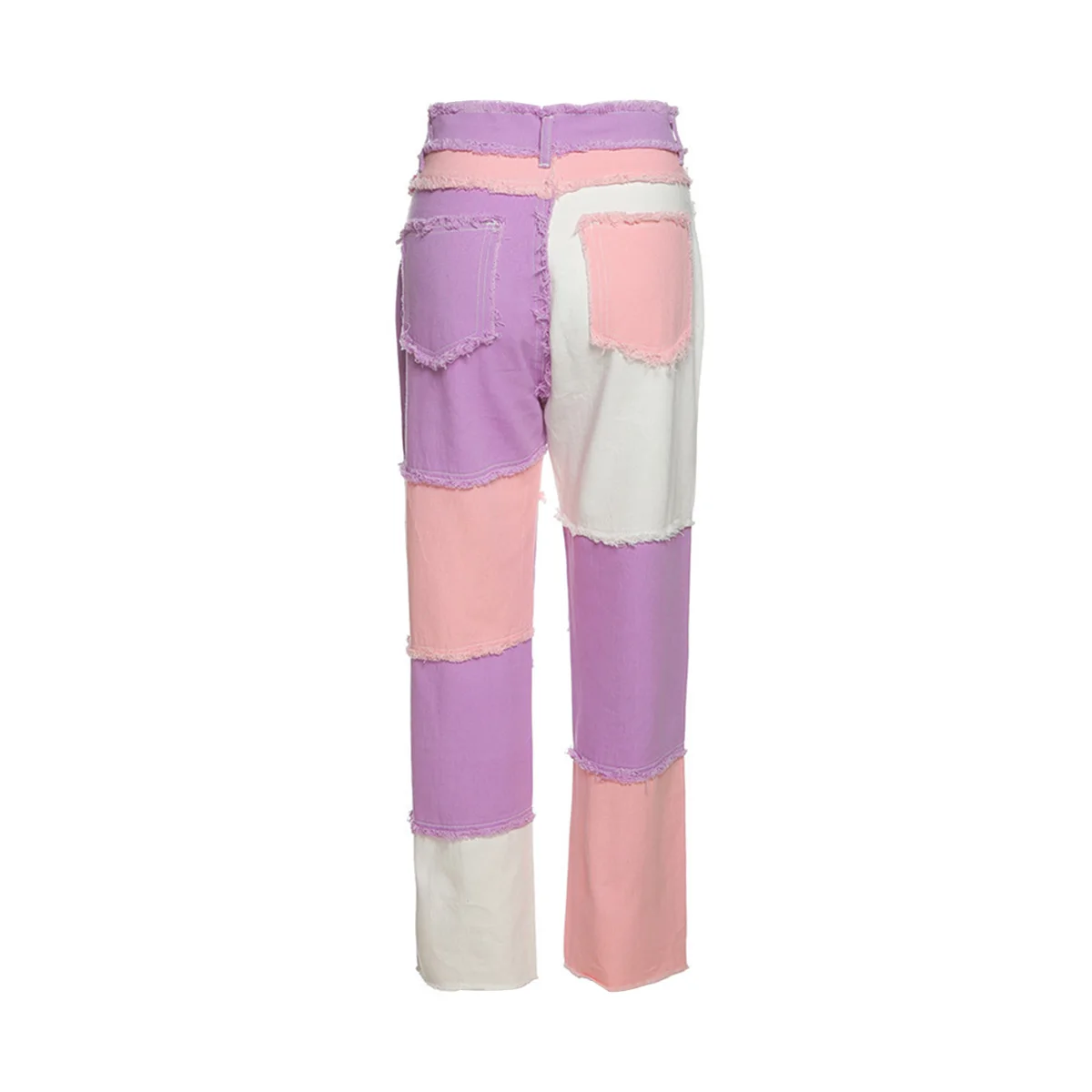 Женские прямые состаренные джинсы с высокой талией, Осенние разноцветные повседневные джинсовые брюки в стиле Харадзюку, 2020