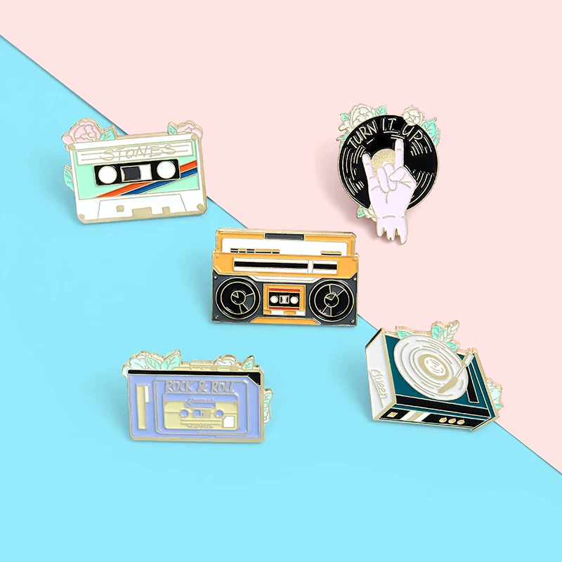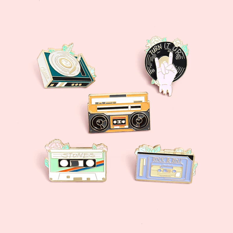 Эмалированная булавка Rock ROLL, музыкальная лента в виде проигрывателя дисков, брошь на сумку, булавка для лацкана, старый школьный значок, ювелирное изделие, подарок для друга
