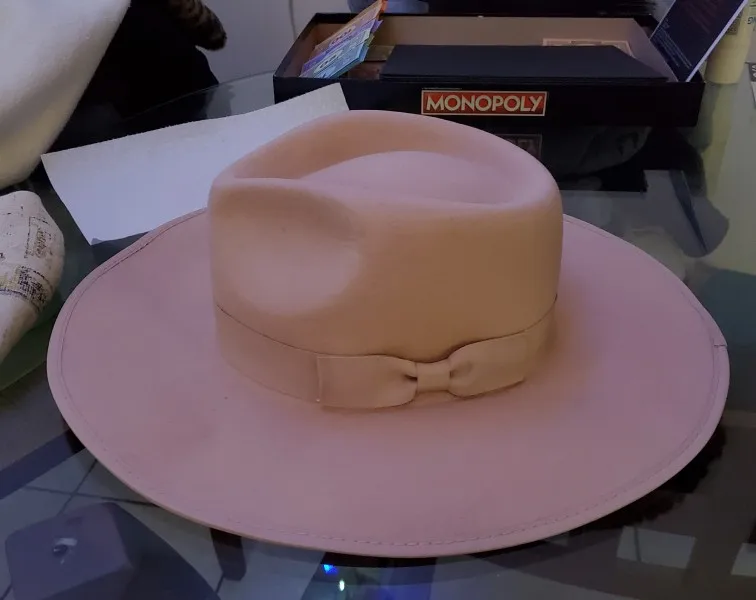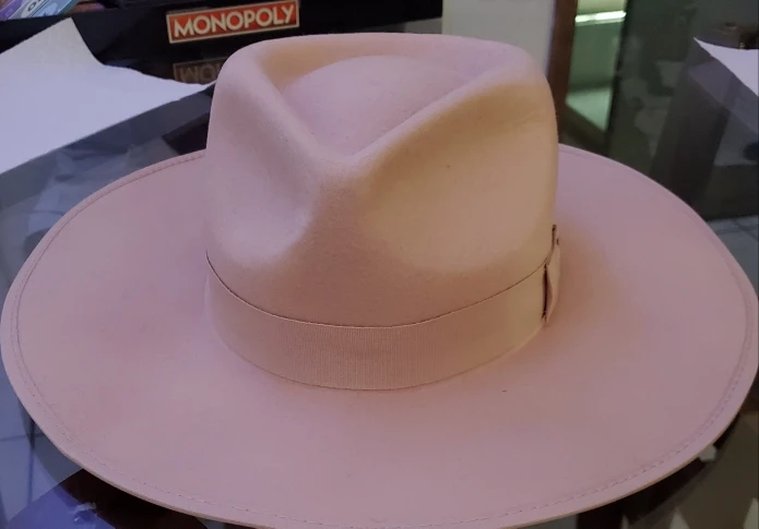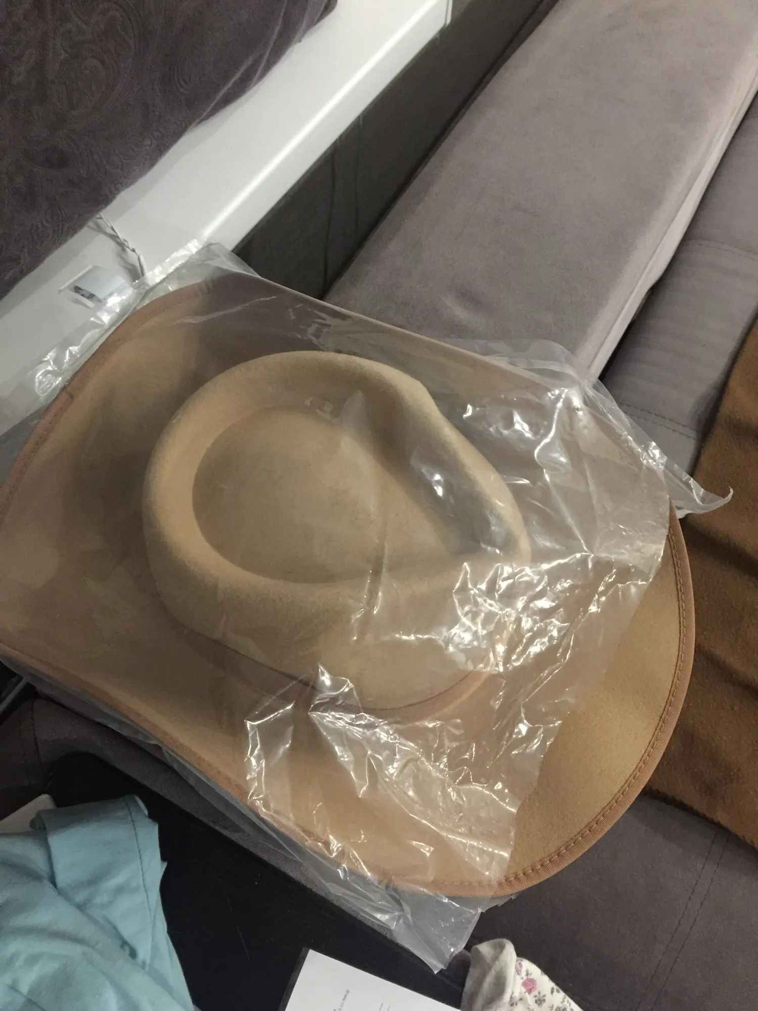 Эта шляпа сложена. Это неприятно и не очень хорошее качество. Он говорит, что его можно гладить, но он все еще не выглядит хорошо.