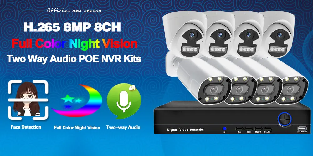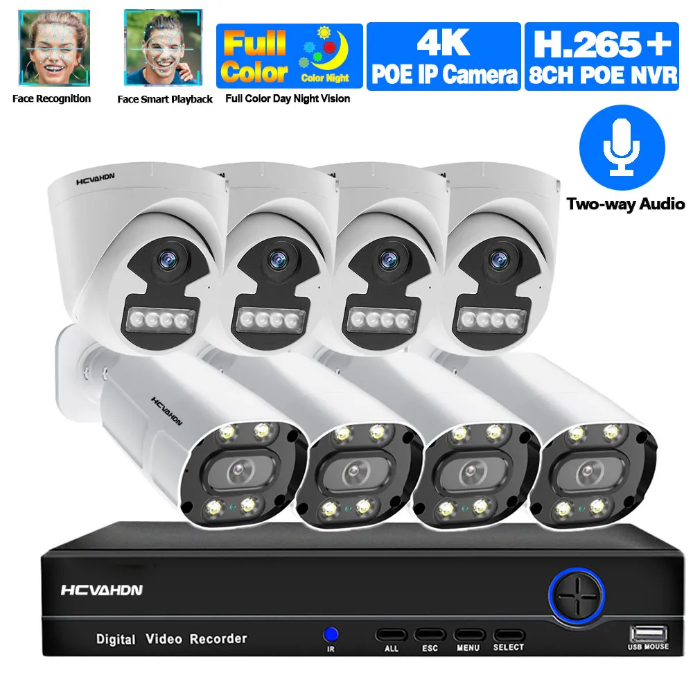 Двухсторонний аудио распознавание лица H.265 8CH 8MP POE NVR комплект CCTV система безопасности аудио AI POE IP камера наружный комплект видеонаблюдения