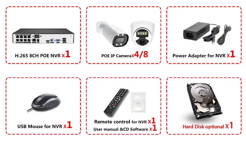 4/8 x HD POE IP 5. Mp/4K цветные камеры дневного ночного видения;
