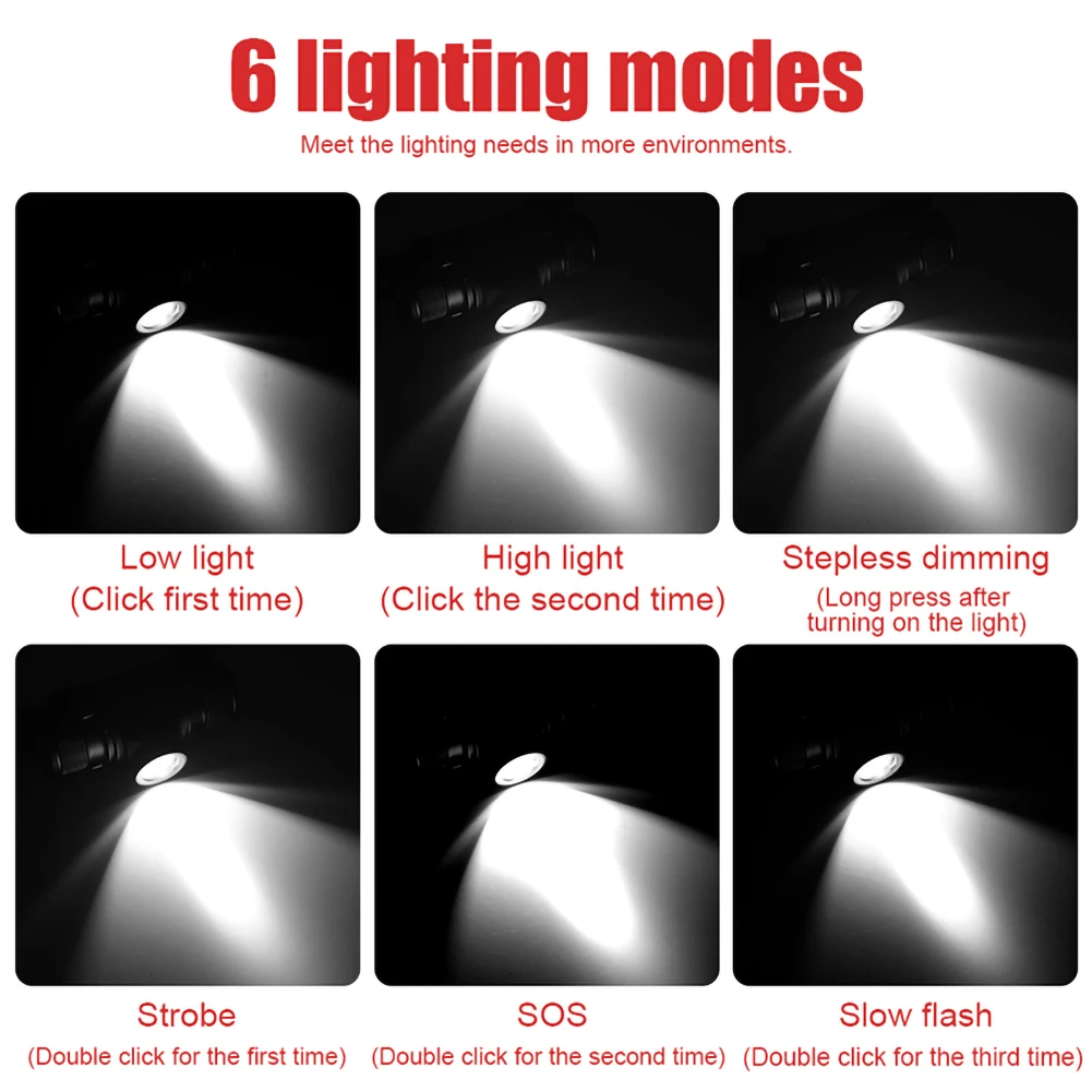 Положение шестерни: низкий светильник-высокий светильник-Длительное нажатие плавное затемнение-двойной щелчок быстрая вспышка-двойной щелчок снова SOS-двойной щелчок снова мигать медленно