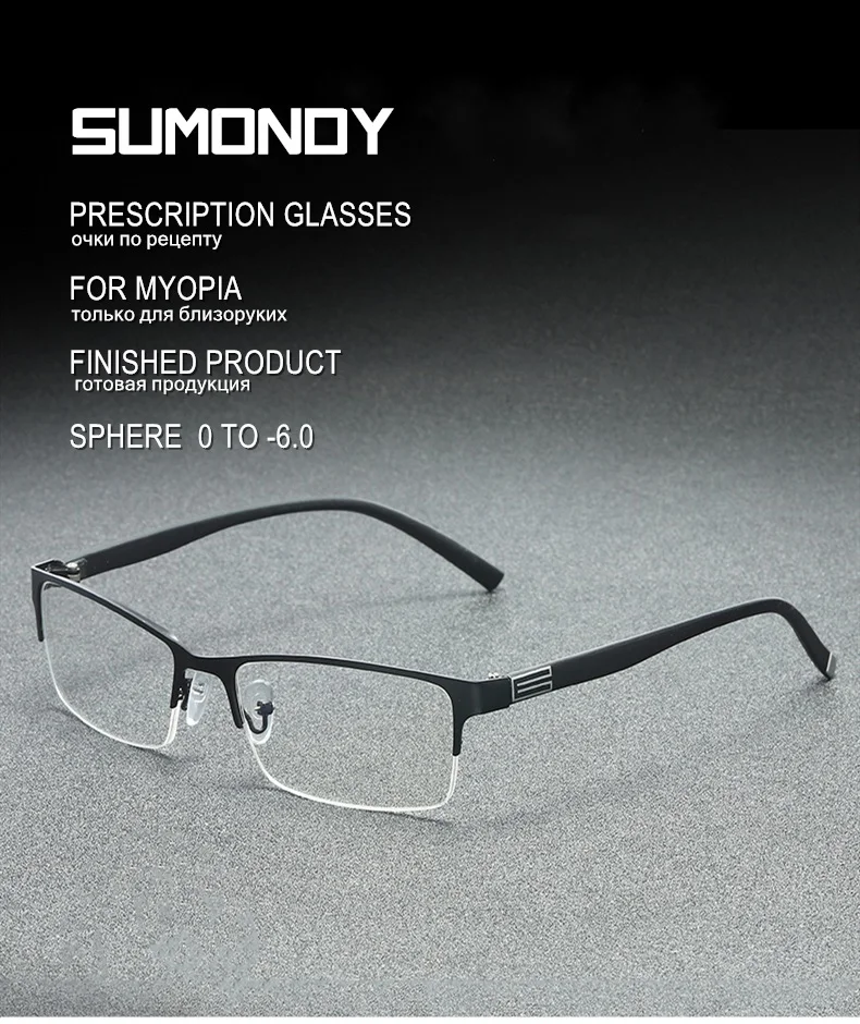 Очки SUMONDY для близорукости, SPH от 0 до-6,0, мужские, женские, мужские, с полуоправой из сплава, по рецепту, для очков для близорукости, UF25