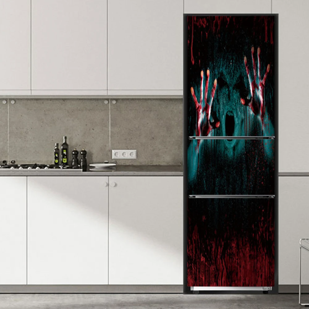 Наклейка зомби на Хэллоуин вечерние холодильника, наклейка для замораживания крови на двери холодильника, обои-покрытие, ужас, домашний декор