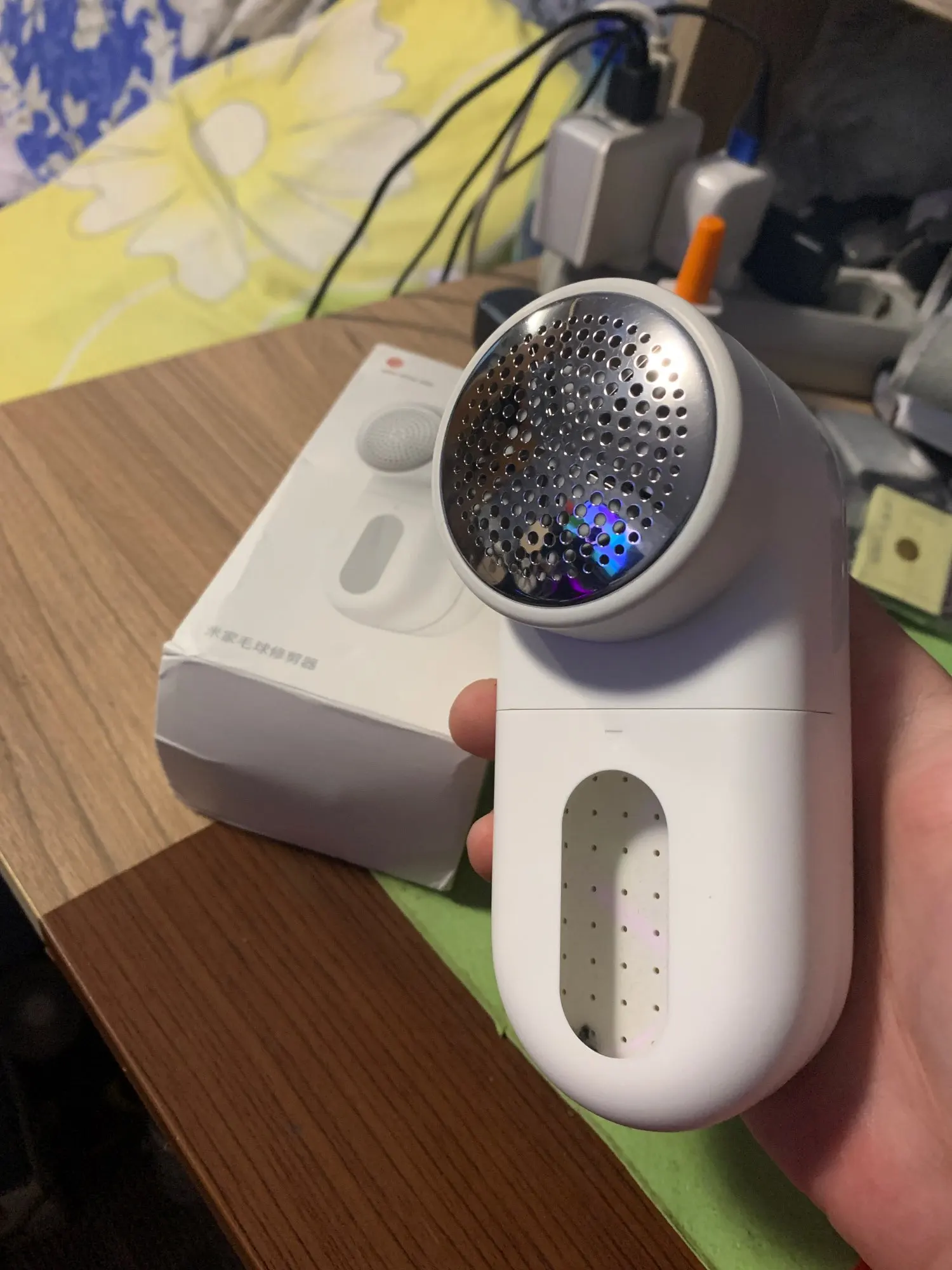 Оооочень крутая вещь! Давно хотела такую машинку, ловила её у разных продавцов, но поймала по скидке здесь. Продавец отправил достаточно быстро. Дорога заняла примерно месяц (получение на почте РФ). Упаковка была помята, но товар цел и навредим в идеальном состоянии. В комплекте: сама машинка, зарядный кабель и щётка для чистки. Инструкция полностью на китайском, но она без надобности, всё понятно интуитивно. Пользоваться легко и приятно. Убирает катышки прекрасно! Слева на фото обработанный рукав, справа с катышками. Результат очевиден. Достаточно тяжёлая, хороший пластик (не дешёвый). На полную зарядку (от компьютера) ушёл примерно час. Довольна чрезвычайно! 100% рекомендую.