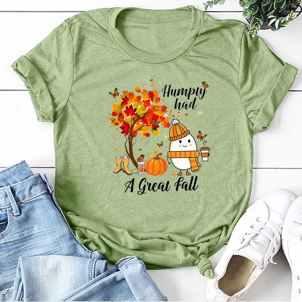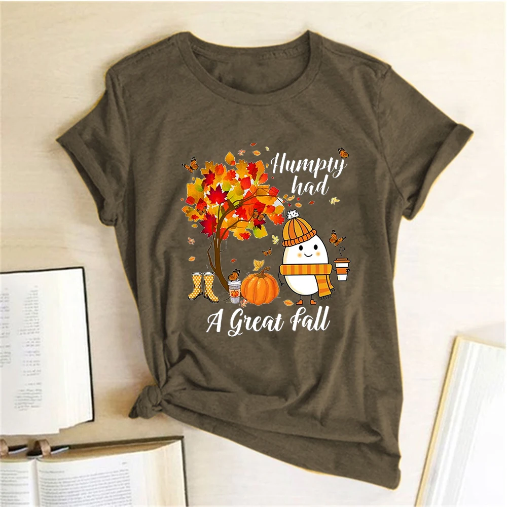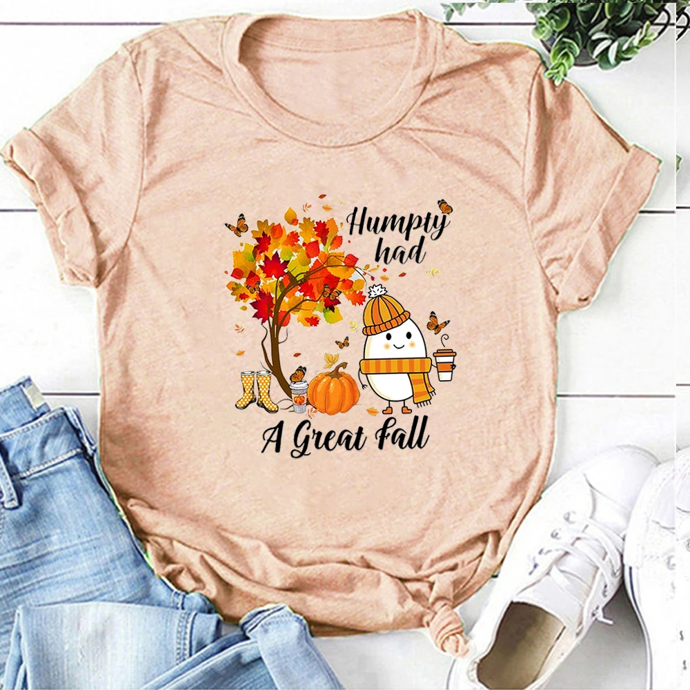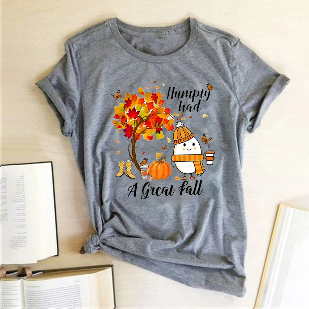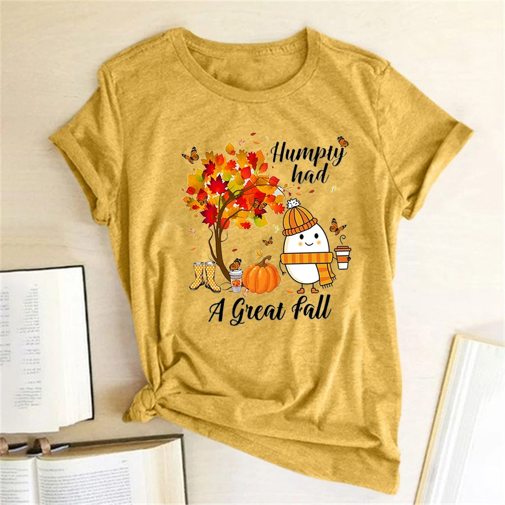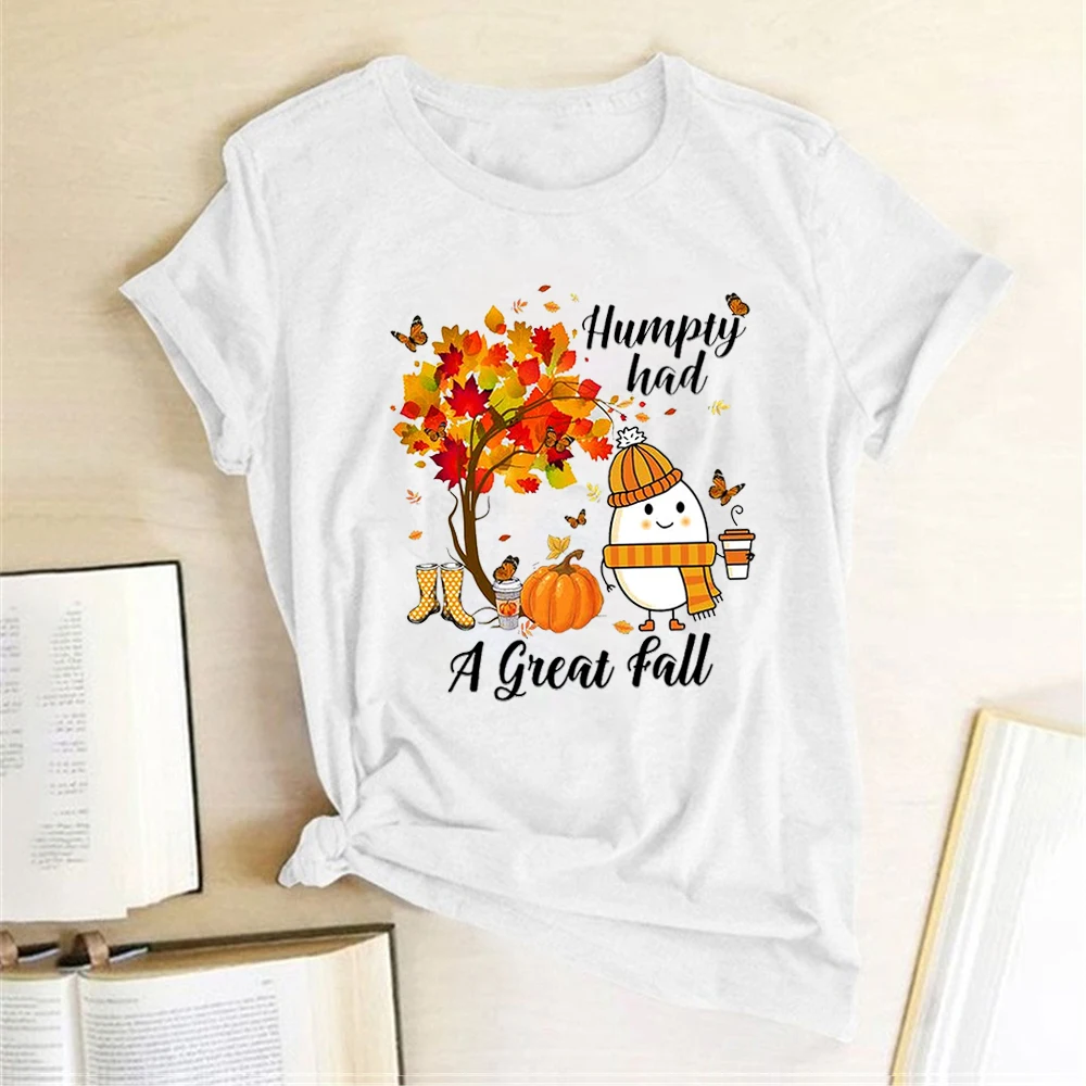 Humpty Had A Great Fall печатные футболки для Хэллоуина женские летние 2020 Графические футболки Vogue футболки с коротким рукавом Harajuku Дамский Топ