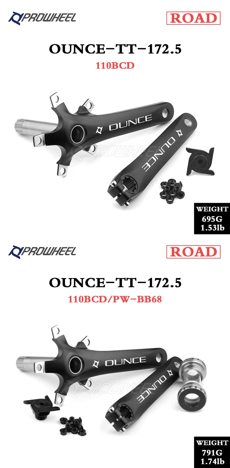 Рукоятка для дорожного велосипеда PROWHEEL, 170 дюйма, 172,5 мм, мм
