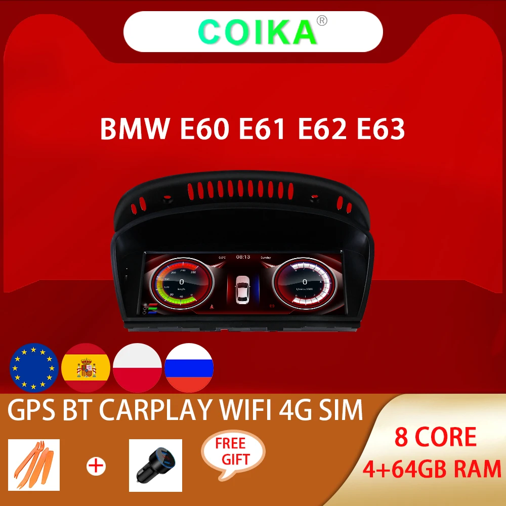 Автомобильный мультимедийный плеер 8 ядер Android 10 для BMW E60 E90 E92 2005-2012 WIFI 4G SIM 4 + 64 ГБ BT IPS сенсорный экран GPS навигатор Carplay
