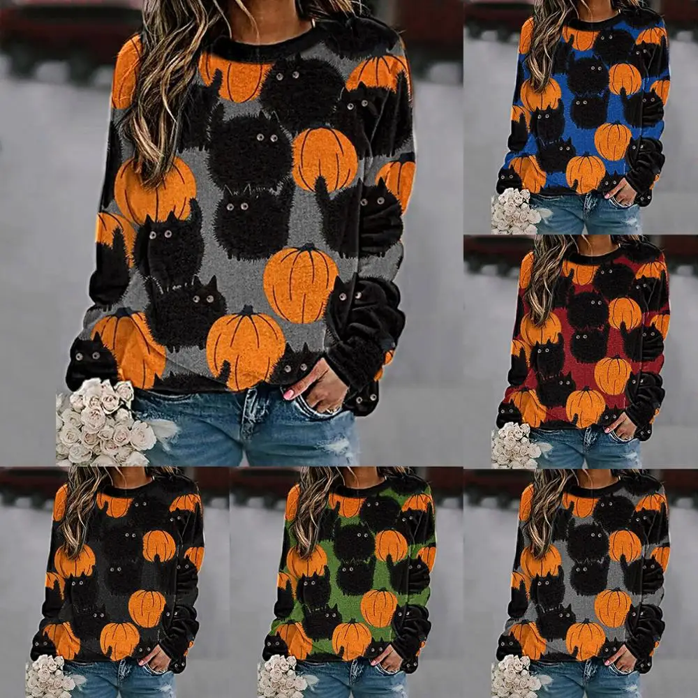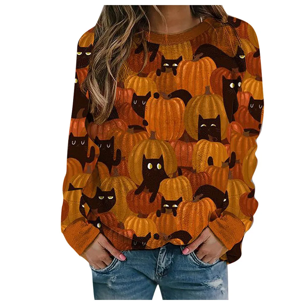Женская толстовка с длинными рукавами и принтом на Хэллоуин, Повседневный пуловер
