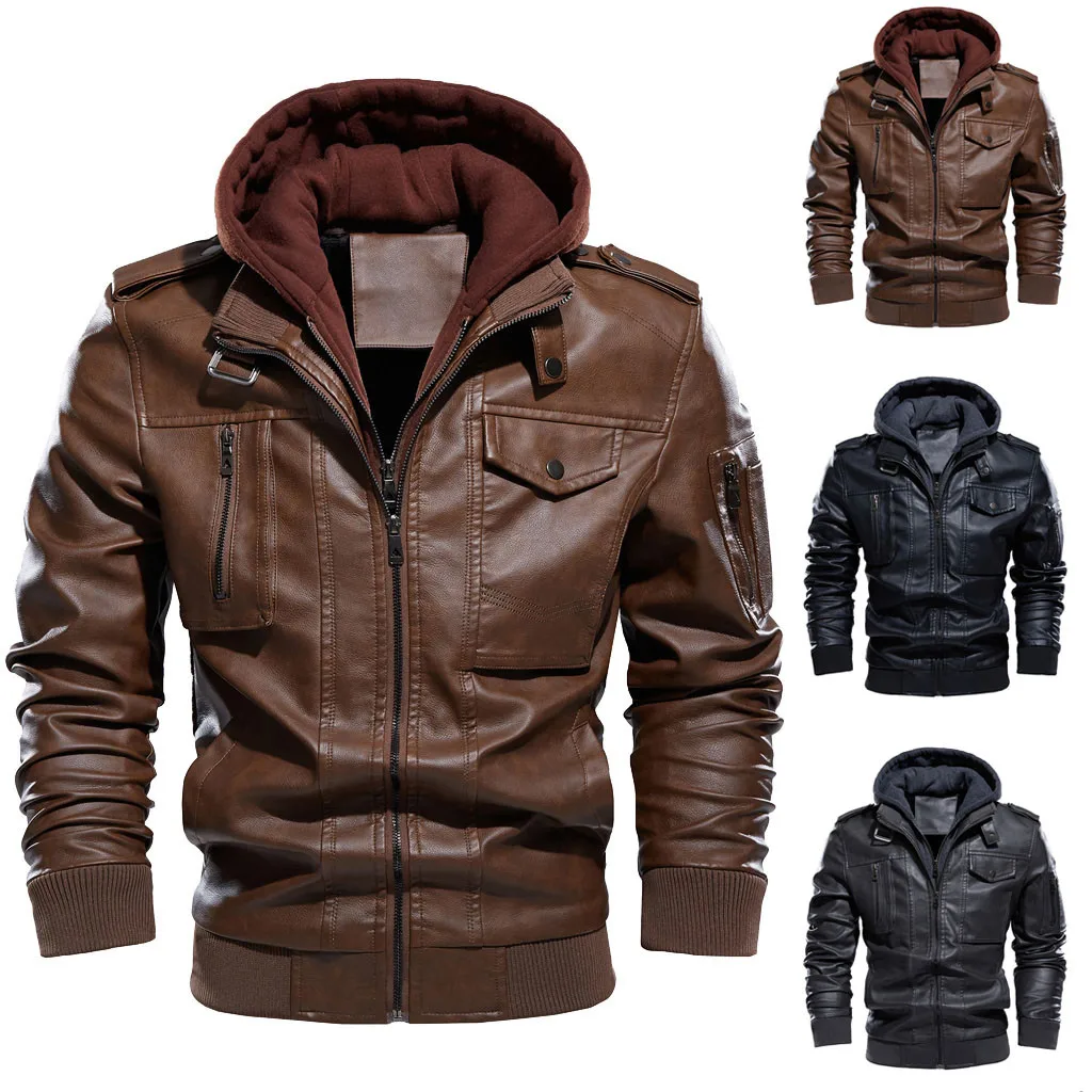 Мотоциклетная кожаная мужская куртка, бархатная теплая кожаная курт...