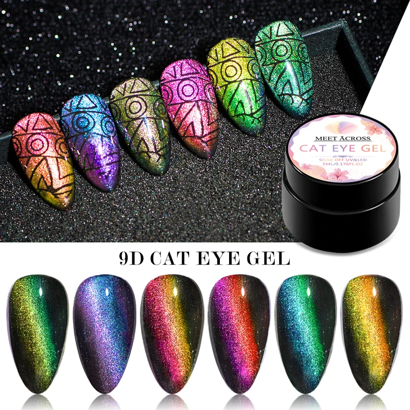 MEET ACROSS 9D УФ-гель кошачий глаз отмачиваемый Магнитный лазерный Сияющий Красочный лак для ногтей все для