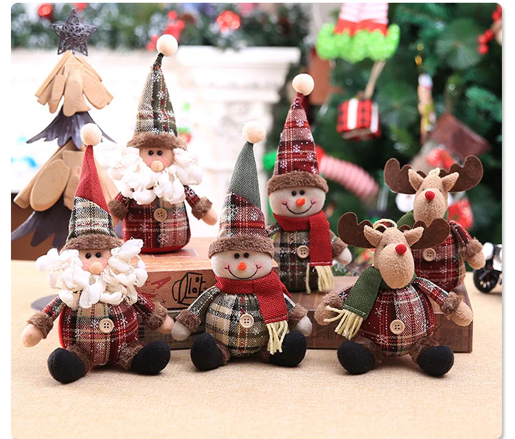 Украшения для новогодней елки, мультяшная кукла, снежинка, клетчатая тканевая кукла, украшения для рождественской елки, украшения для кукол карликов