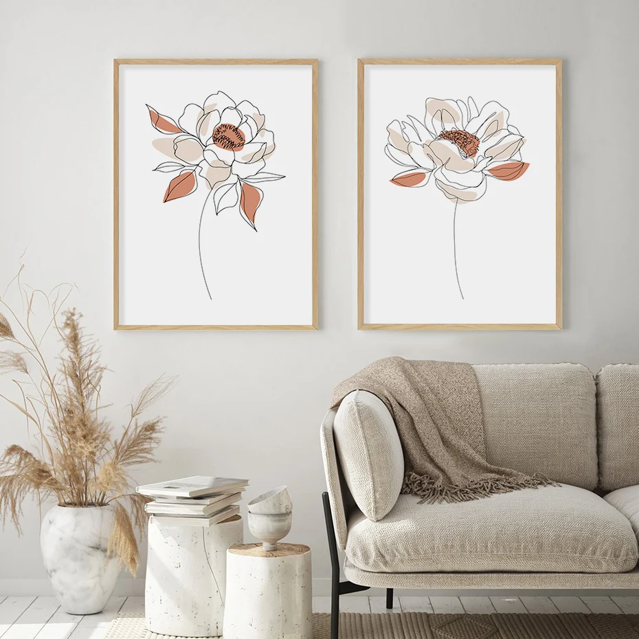 Богемный минималистичный бежевый Пион цветочный постер холст картина настенные художественные принты картины гостиная современный домашний декор