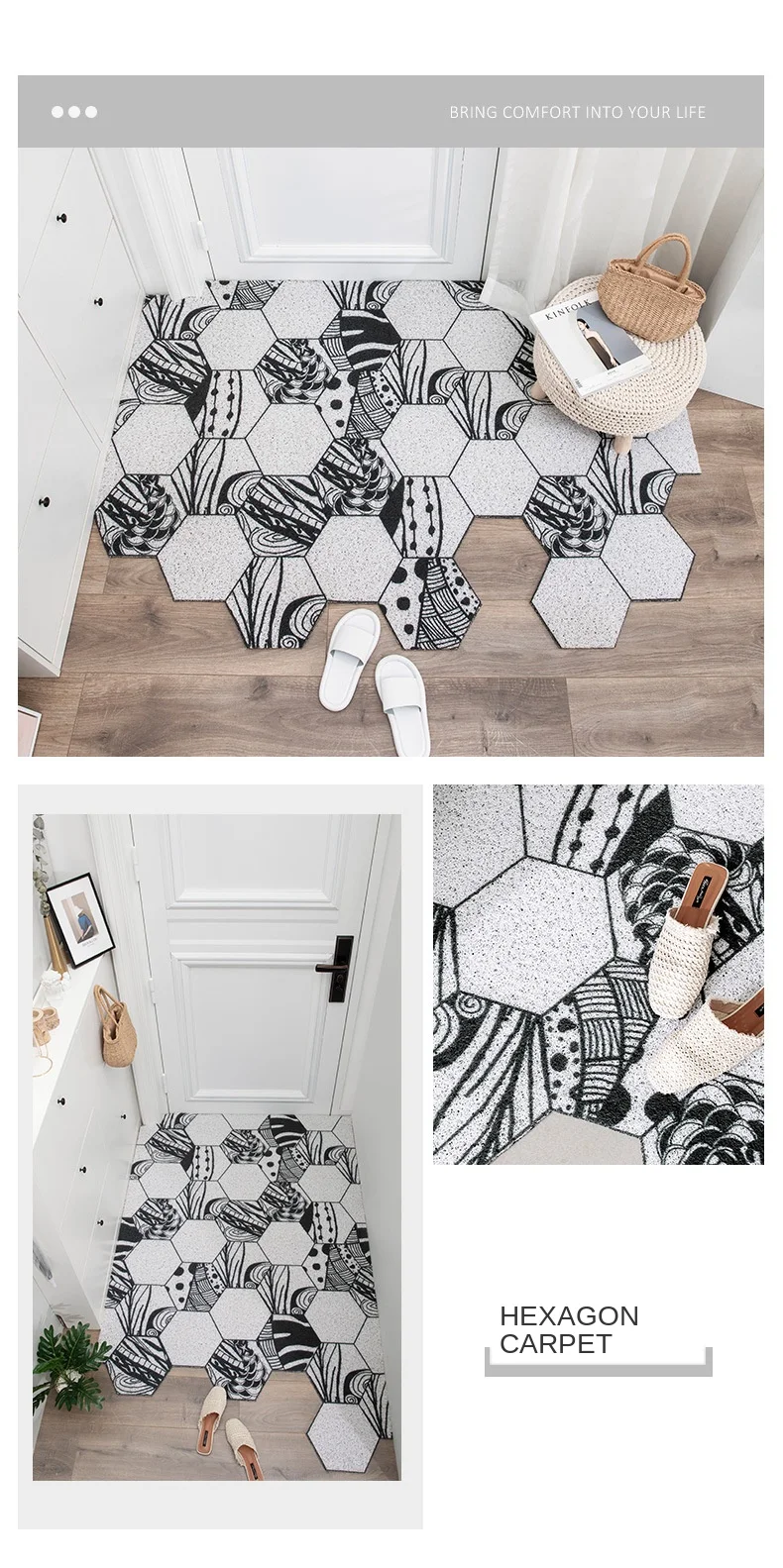 Коврик для прихожей с шелковой петлей, входной шестигранный безразм...