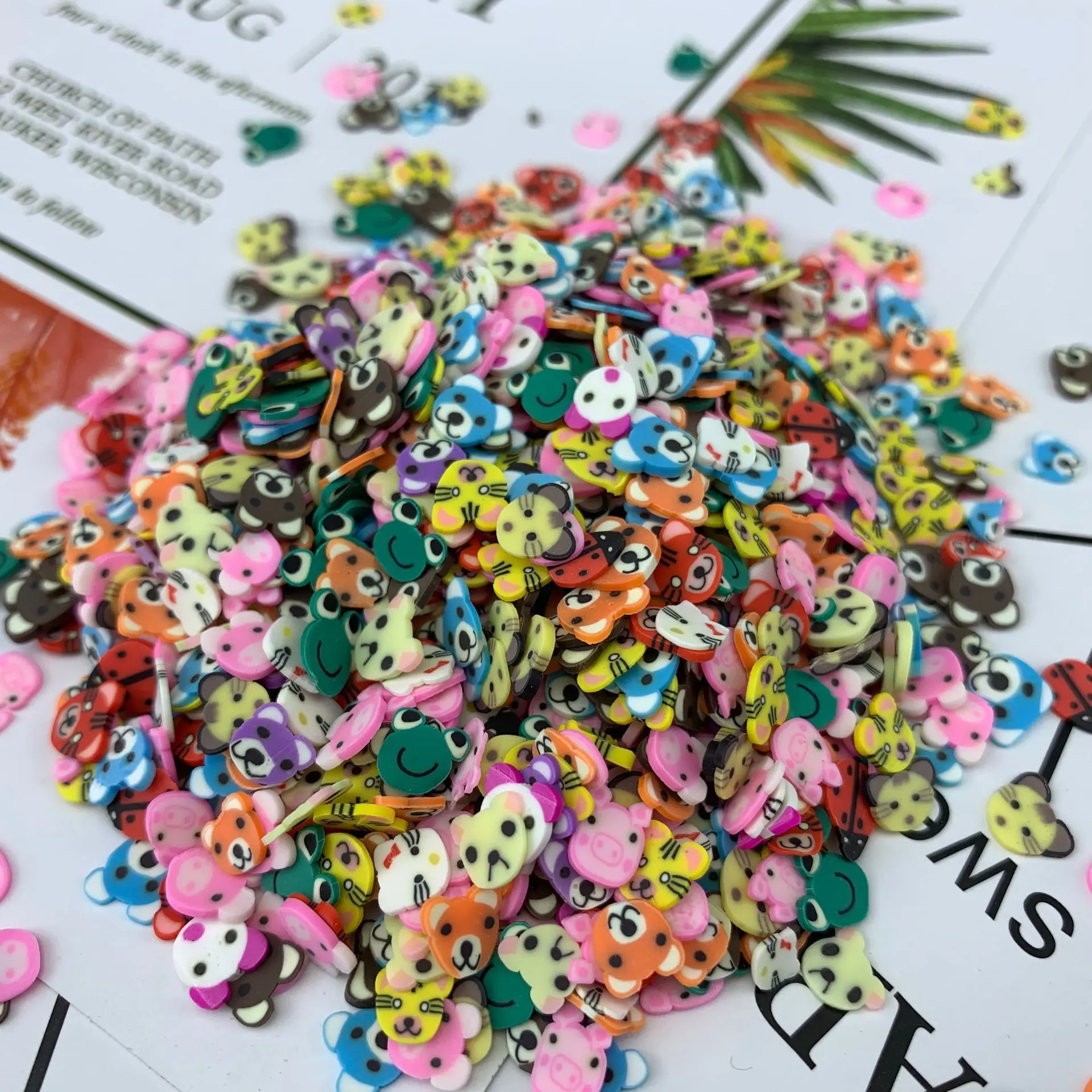 Вес: 12 г Количество: около 1000 шт в упаковке Диаметр: 5 мм Материал: мягкая глина Особенности: Изготовлен из мягкой глины, нетоксичный и экологически чистый. Подходит для блеска для губ diy, декора ногтей, слимов микс и т. Д.