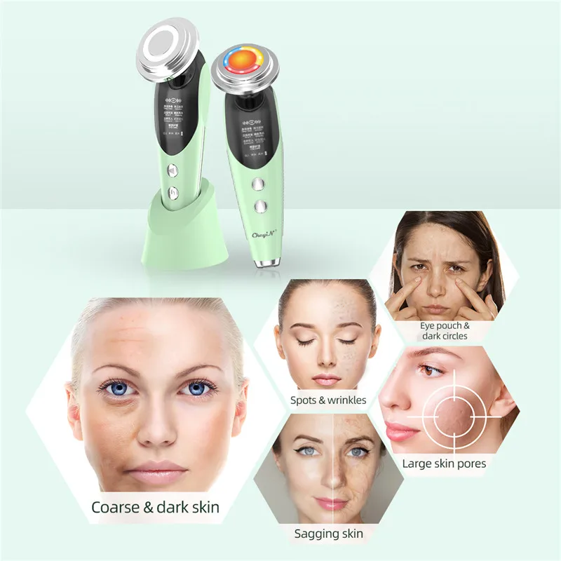 7 в 1 EMS светодиодный светильник терапия звуковая вибрация для удаления морщин массаж лица ионный Фотон функция горячий холодный уход за лицом