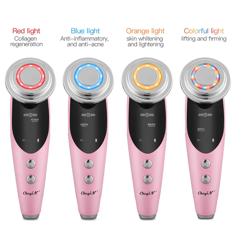 CkeyiN 7 в 1 EMS светодиодный светильник терапия звуковая вибрация для удаления морщин массаж лица ионный Фотон функция горячий холодный уход за лицом