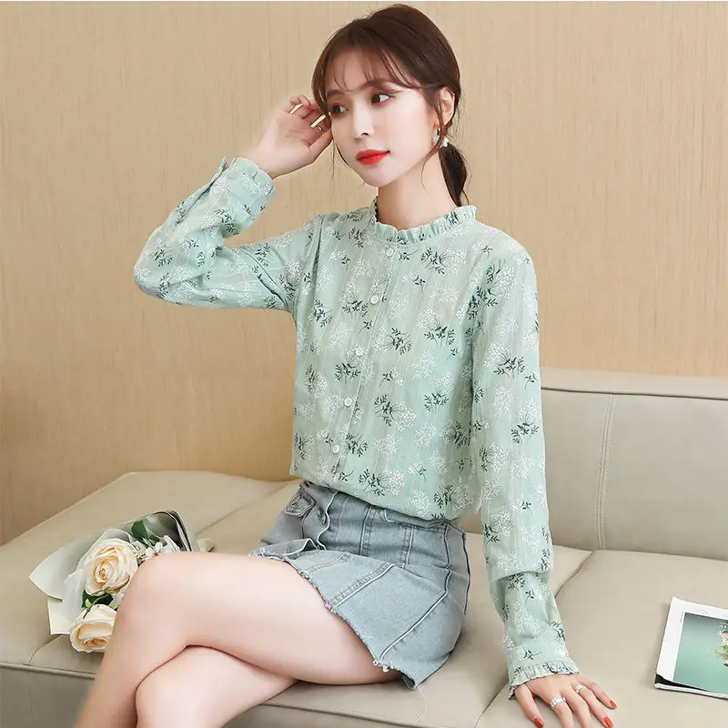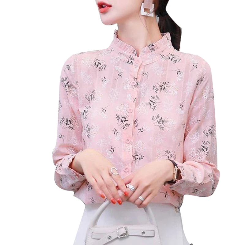 Женские весенне-осенние хлопковые блузки, рубашки, женские водолазки с принтом на пуговицах, с длинным рукавом, Элегантные повседневные топы DD9048