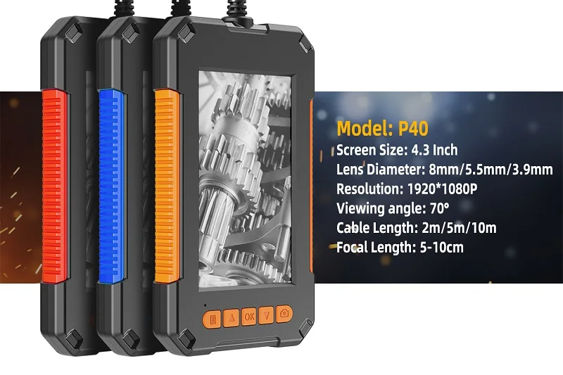 Эндоскоп с экраном 4,3 дюйма. Легко управлять и удобно носить с собой. И нет необходимости загружать приложение. Включение и воспроизведение. Он поддерживает съемку фотографий и запись видео, может легко проверить видео одновременно. Этот продукт оснащен маленьким зондом для камеры диаметром 8 мм/5,5 мм/3,9 мм. Между тем, он может легко попасть в любое место, где вы не можете прикоснуться и зрение не может достичь. Светодиодный светильник позволяет пользователям получать четкое видение в темной среде.