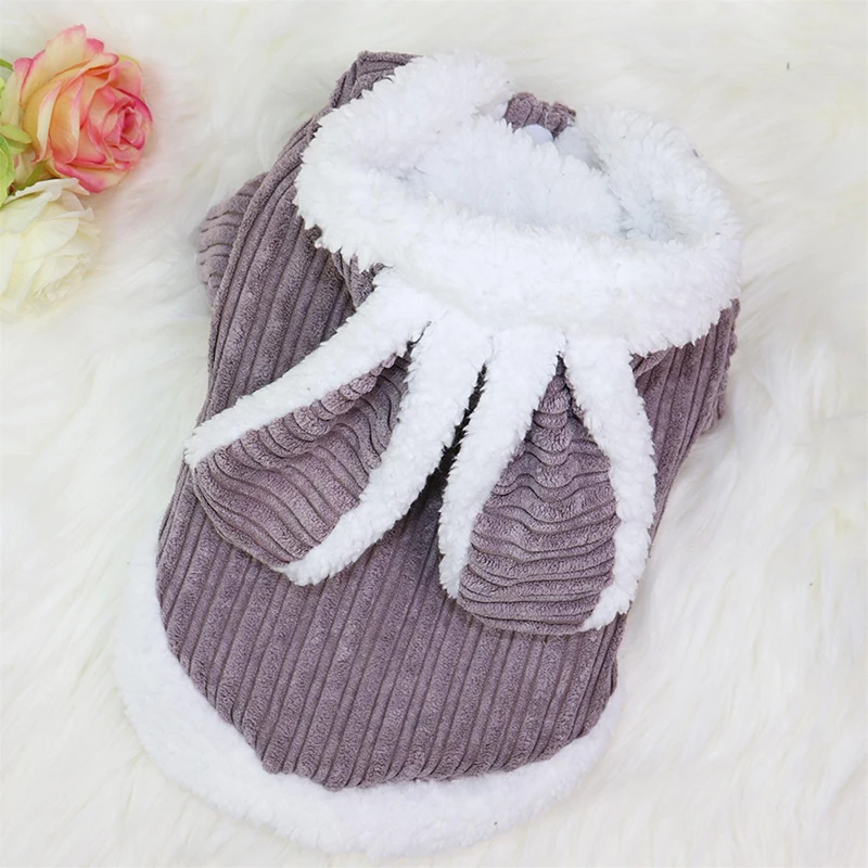 Зимнее теплое пальто для домашних животных, удобная пижама в виде кролика, мягкая дышащая одежда толстовка с пуговицами для щенков, для маленьких и средних собак