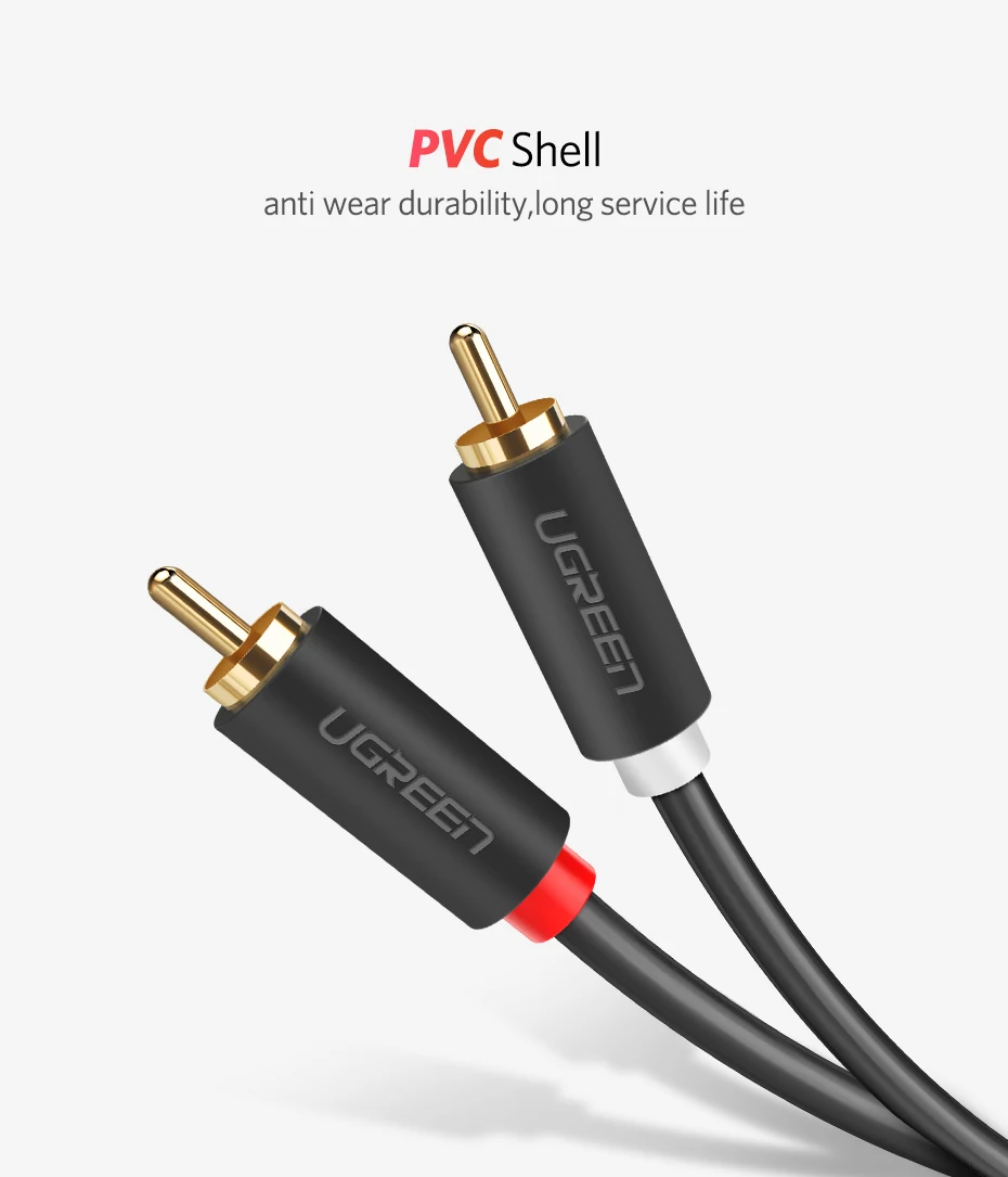 Аудиокабель UGREEN RCA, 2 штекера RCA на 2 штекера RCA, для домашнего кинотеатра, усилителей HDTV, Hi-Fi систем, аудиокабель