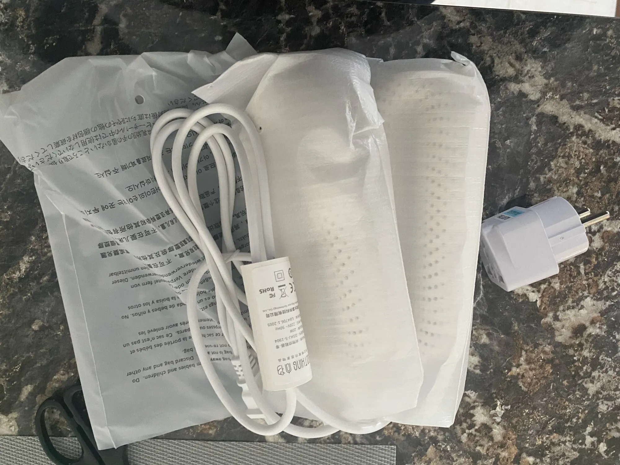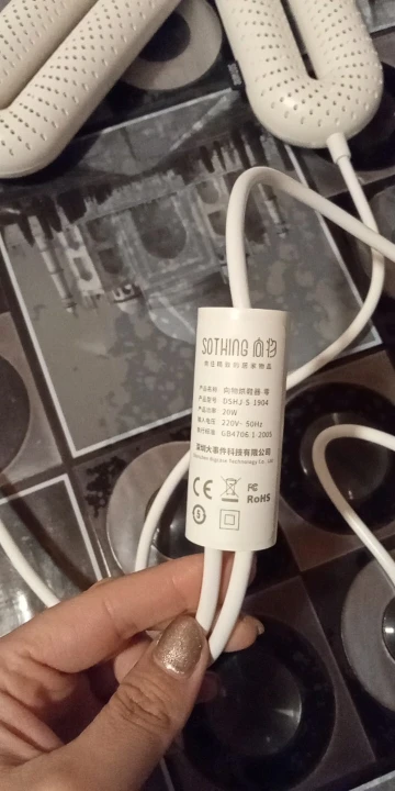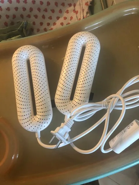 Заказ приехал за две недели до Красноярска, отслеживался всю дорогу. Упаковка помята, но внутри все целое, работает. Сушилка приятно греет, не обжигает, обувь просушивает хорошо - но уф стерилизацией не пахнет, просто хорошо сушит. Провод короткий, но для мобильной сушилки некритично, обычно ее располагают рядом с розеткой. Вложен универсальный переходник на розетку.