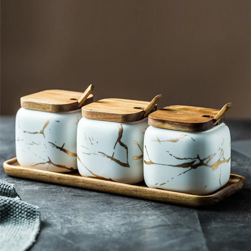 Нордическая матовая мраморная керамическая банка для ванили с поддоном, современная бытовая коробка для ванили, соли, сахарницы, набор кастрюль для соевого соуса, уксуса