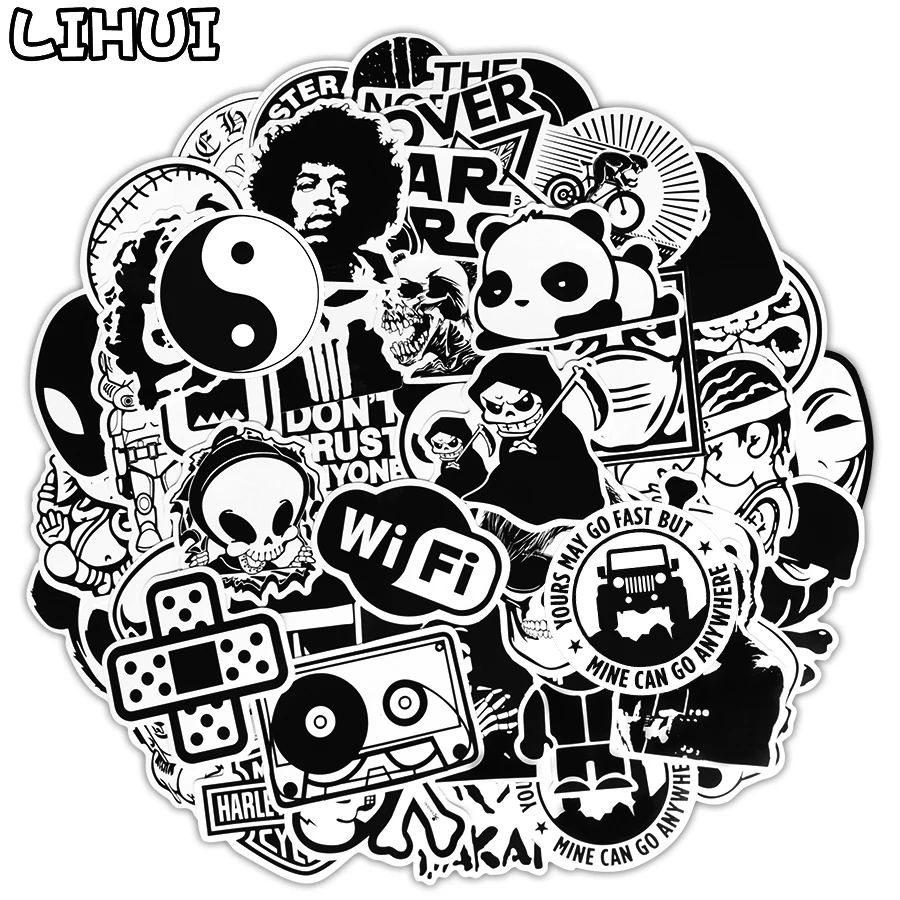 Наклейки черно-белые, 50 шт., аниме, Мультяшные, крутые, наклейки, игрушки для детей, сделай сам, автомобиль, чемодан, ноутбук, наклейка бомба, наклейка JDM