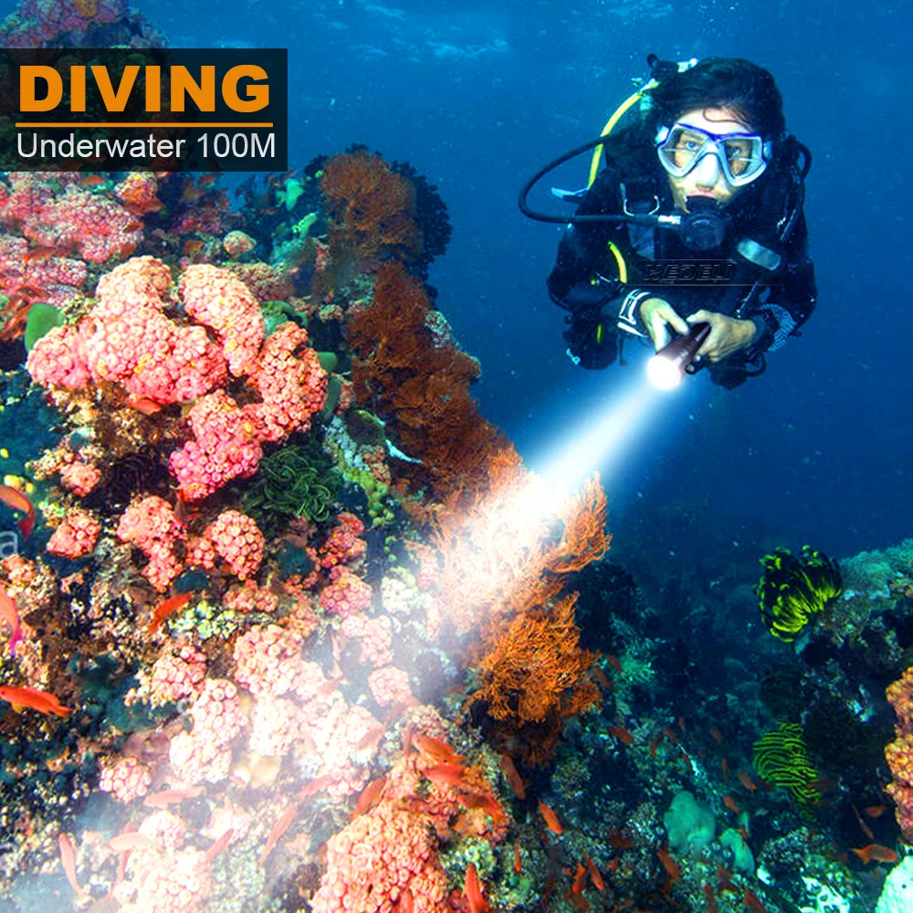 Фонарик для дайвинга 100 м cree led xm l2 перезаряжаемый 18650 26650 подводный светильник фонарик для охоты водонепроницаемый сильный