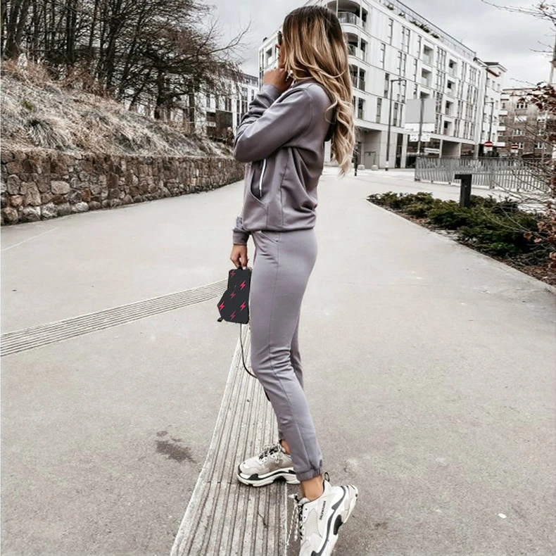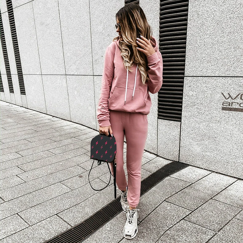 XUANCOOLосенний женский спортивный костюм, комплект из двух предметов, однотонные толстовки, повседневная спортивная одежда, топ + штаны для бега, Chandal Mujer