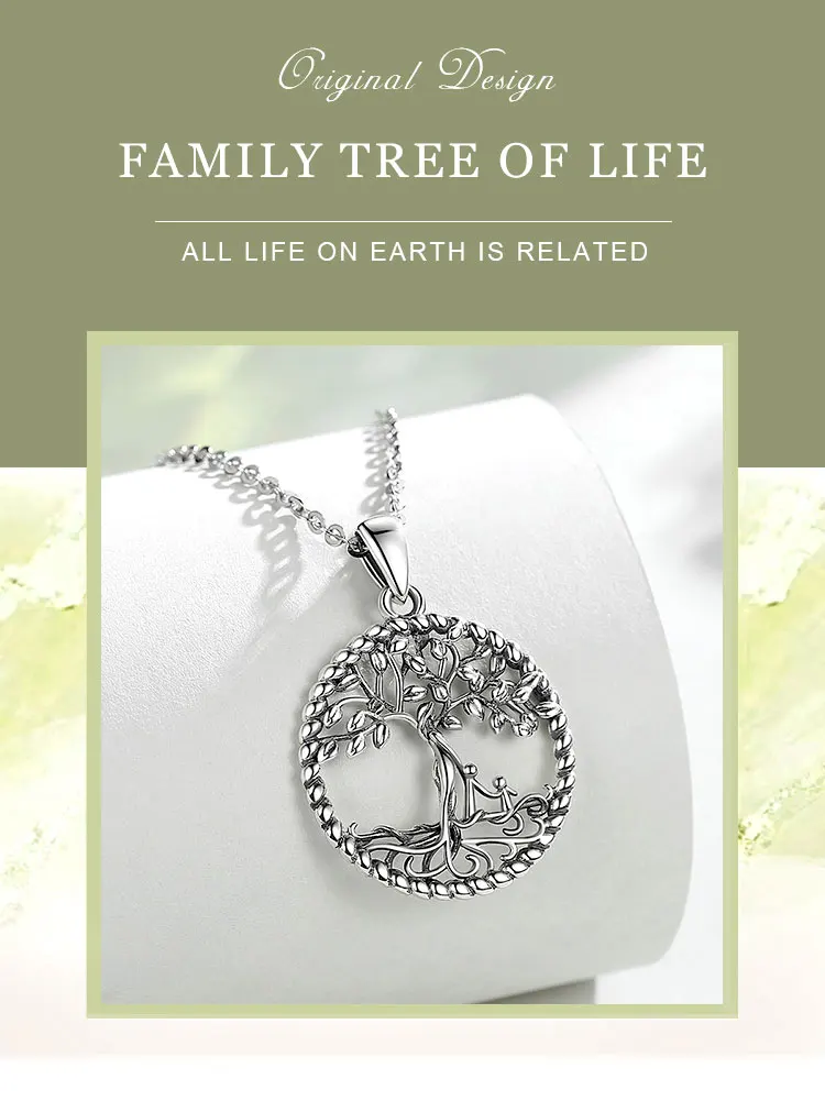 Подвеска Древо жизни EUDORA, серебряное ожерелье из стерлингового серебра 925 пробы для женщин и двух детей, винтажное ювелирное ожерелье с подарочной коробкой