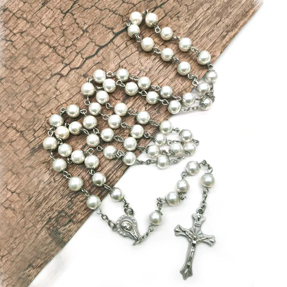 Длинная цепочка с имитацией жемчуга, ожерелье из католического круглого сечения, православный крест, Иисус, религиозные молитвенные украшения, подарок