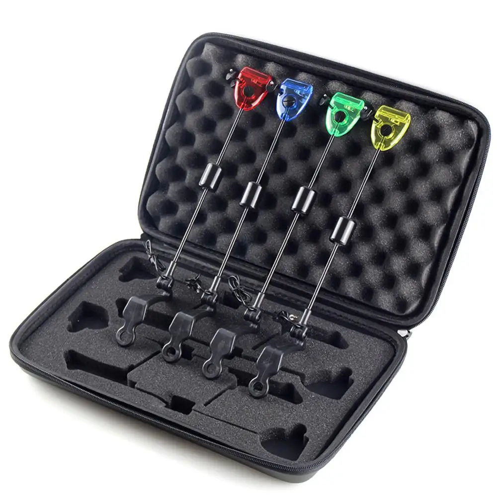 Набор Свингеров для рыбалки, сигнализаторы поклевки, 4 шт., чехол на молнии, светодиодная подсветка, для ловли карпа, рыболовные аксессуары X601