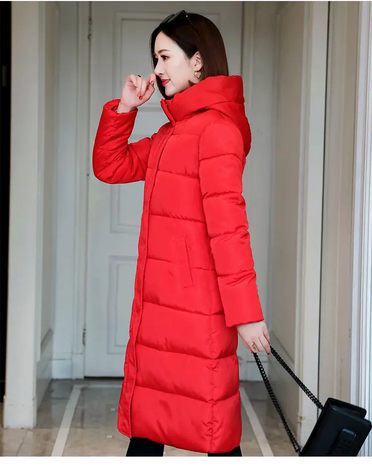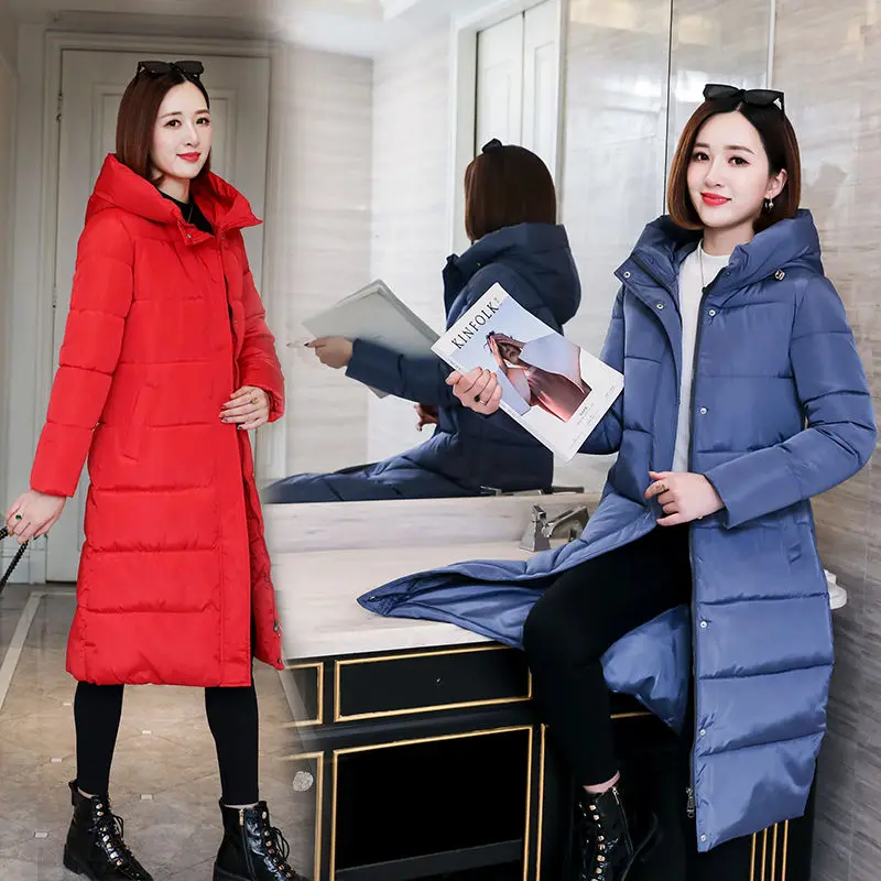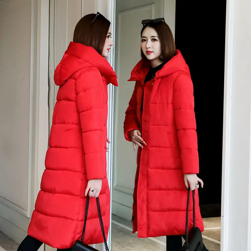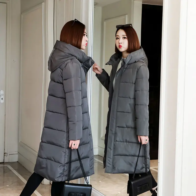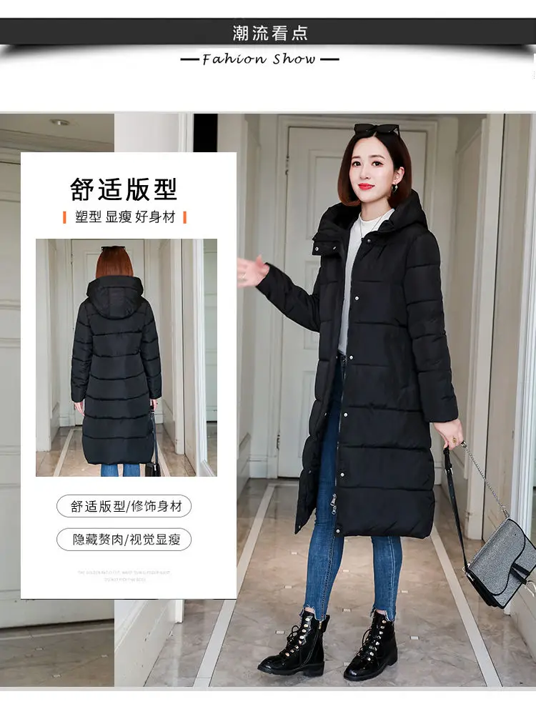 Женское зимнее пуховое пальто, длинная стеганая одежда, однотонная Черная куртка, теплая толстая зимняя парка