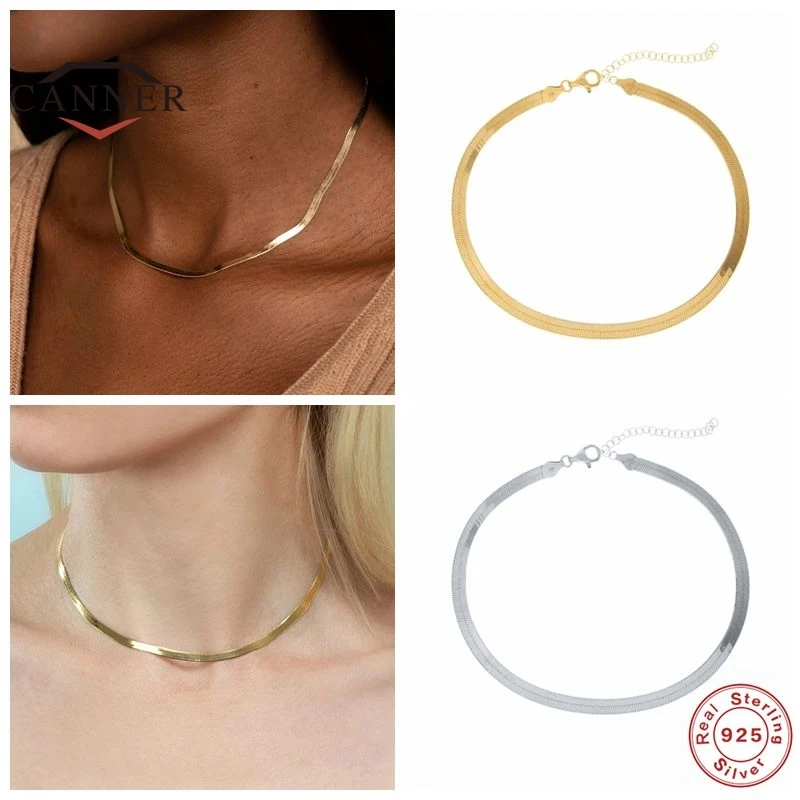 Цепочка-змейка женская из серебра 925 пробы, плоская, женское колье, чокер пробы
