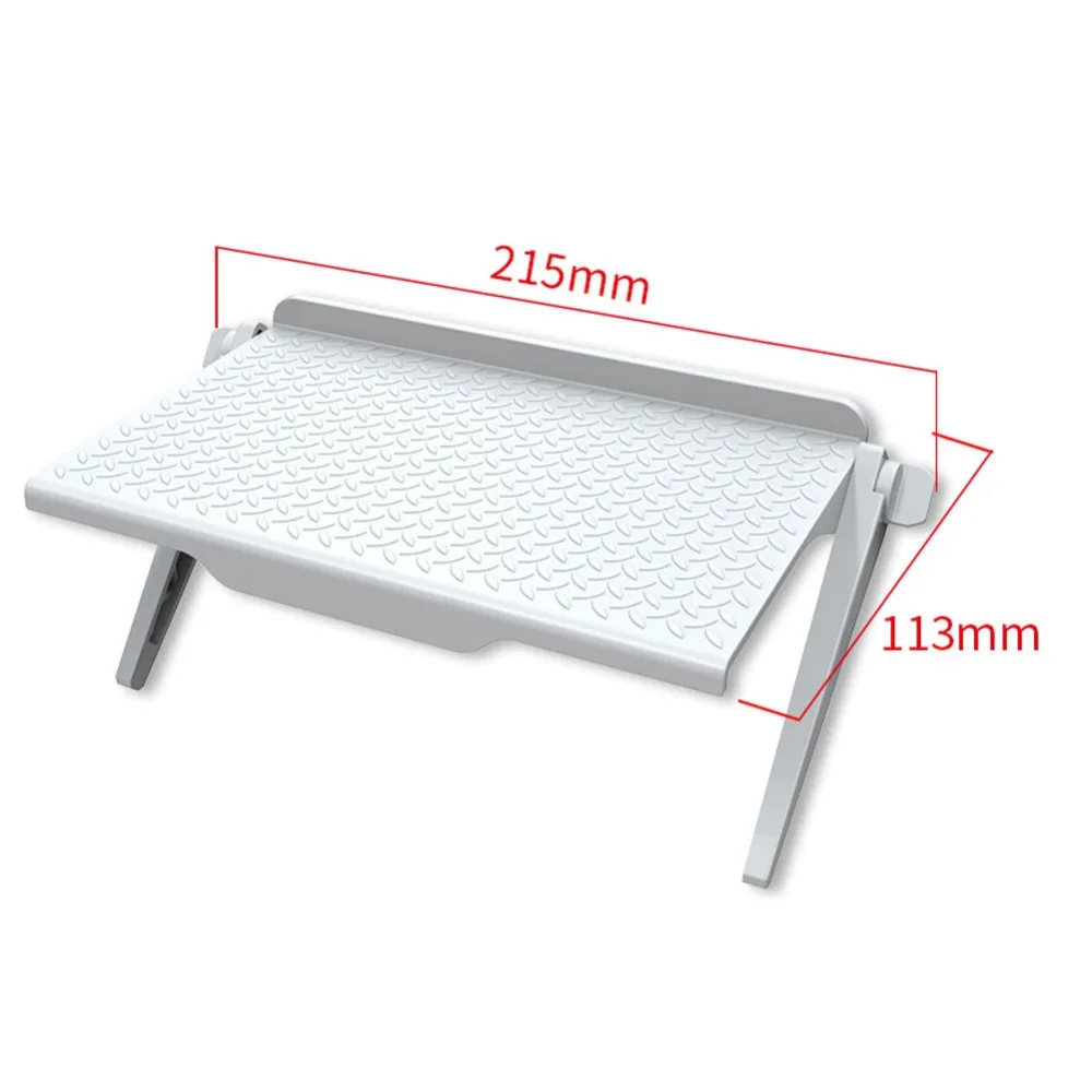 Хотя и не сделано для этой цели, я купил верхнюю полку для поддержки ТВ декодера. На фотографиях видно, что полка немного маленькая, но все равно приемлема. Полка, однако, очень хорошо сделана: для поддержки ног есть втулки, которые позволяют им быть заблокированы, как только будет обнаружено правильное положение.
