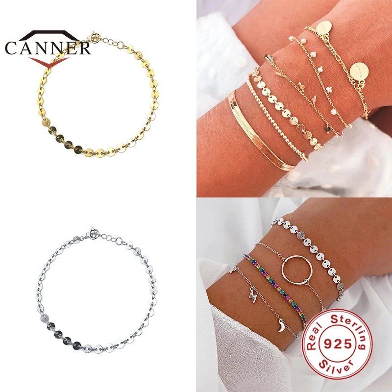 Женский браслет CANNER, очень простой браслет из стерлингового серебра 2020 пробы, браслет с дисками, тонкие ювелирные браслеты, бесплатная доставка, 925