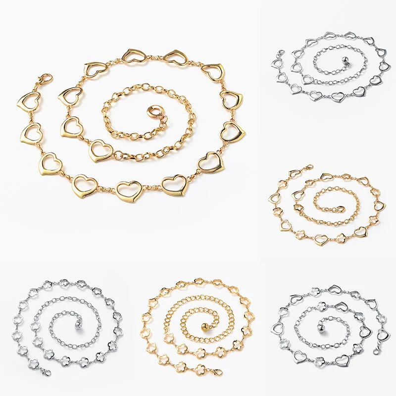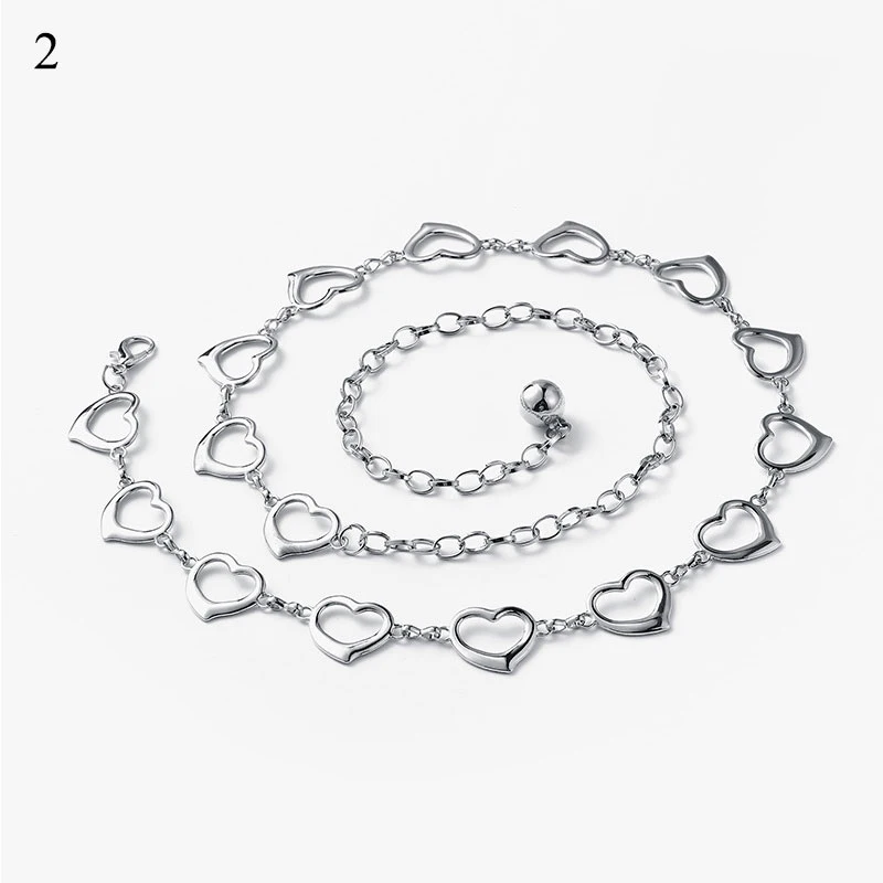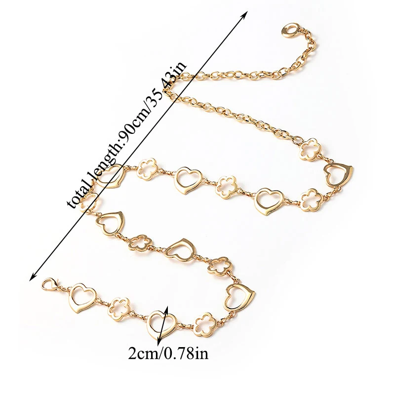 Женский ремень с длинной цепочкой, длинный пояс в стиле панк, с кисточками в форме сердца, цвет под золото и серебро, уличная одежда в стиле хип-хоп, пояс для брюк, 90 см