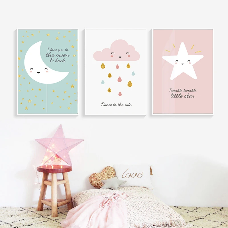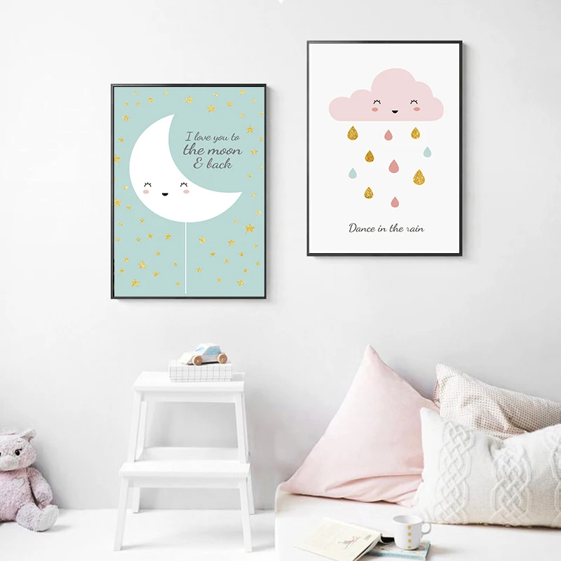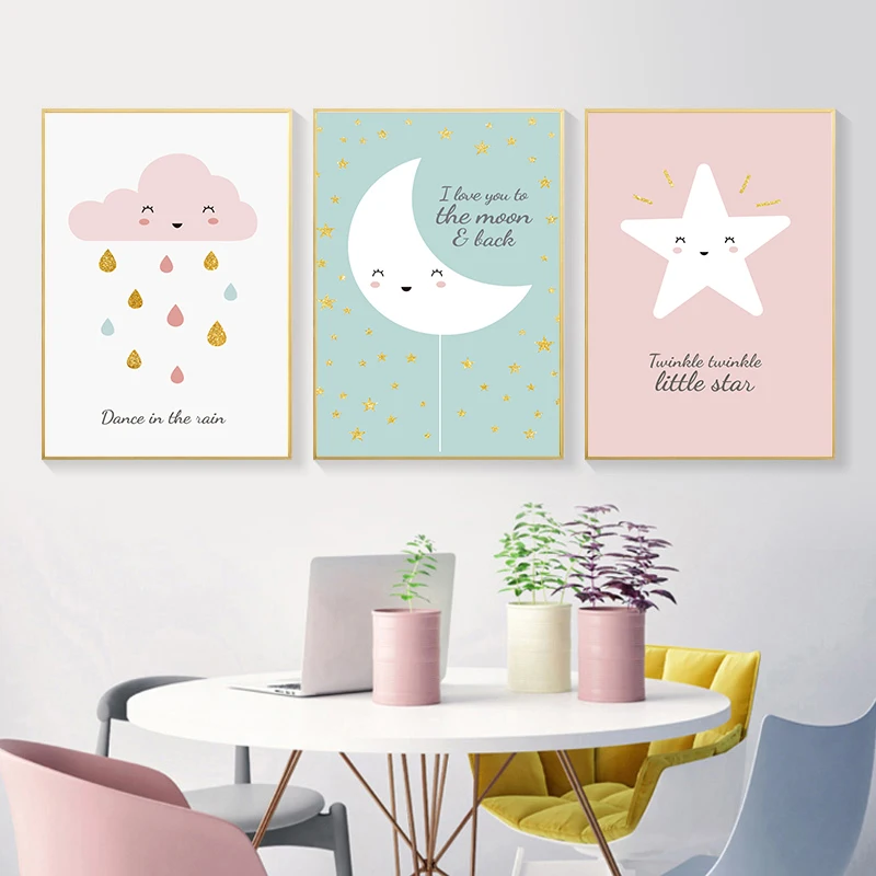 Милый кролик Жираф луна мультфильм настенная живопись холст скандин...