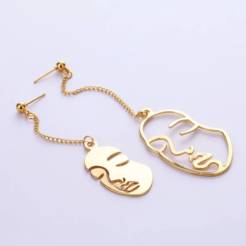 Новые серьги в виде лица золотого цвета, серьги-капли с абстрактным искусством для женщин и девочек, серьги с кисточками, изысканный подарок