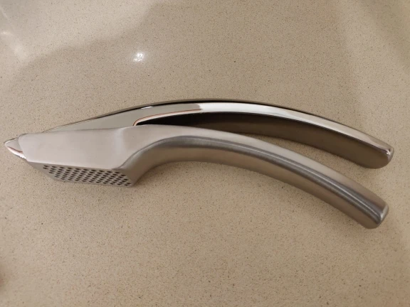 Рассчитывал, что будет увесистее. На внутренней стенке чаши видны дефекты литья. Давить не мешает, но верхняя часть поцарапалась уже. Короче качество не сказать чтобы супер. Но на первый взгляд ничего. Давит относительно неплохо. Есть давилки где усилий прикладывать меньше надо. После выдавливания оставалась тонкая пленка на дне чаши. Результат устроил. Брал ради внешнего вида. Так бы выбрал чесночную терку за 2 бакса - поудобнее будет.
