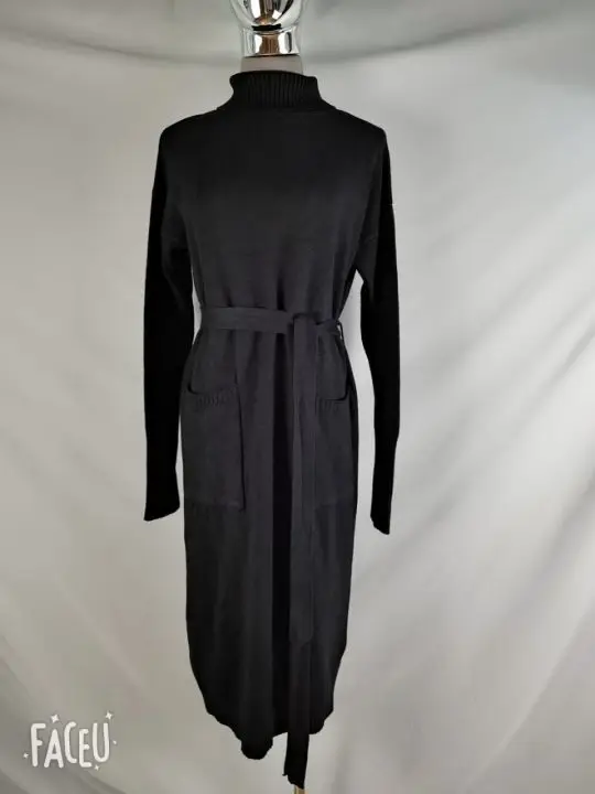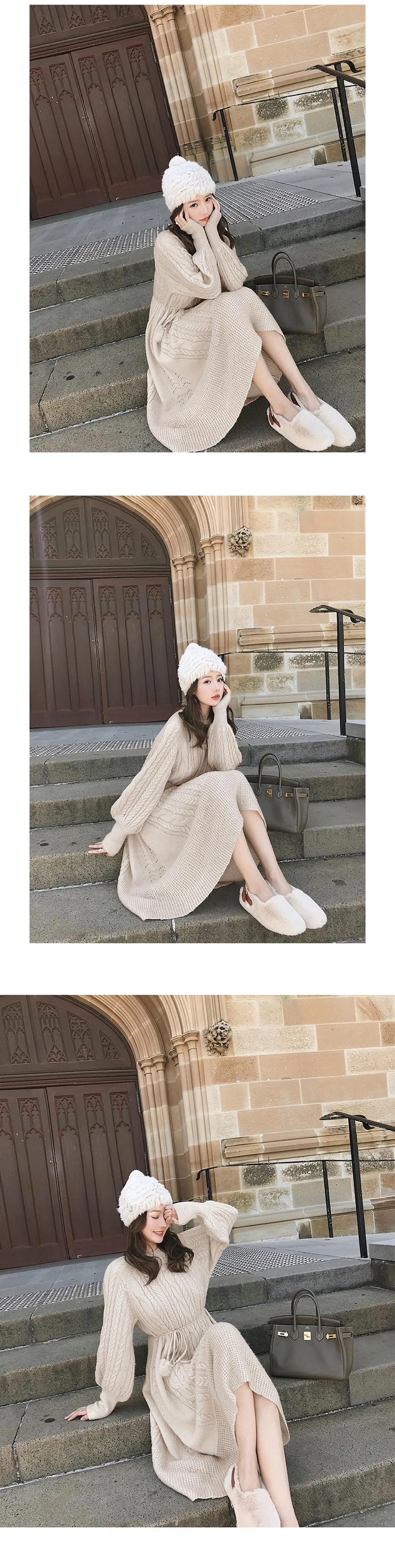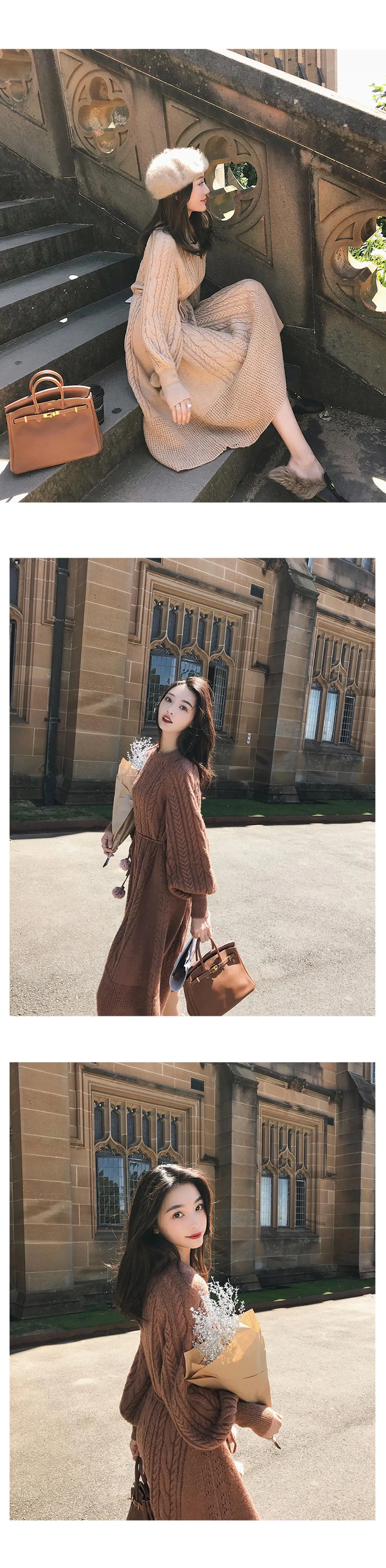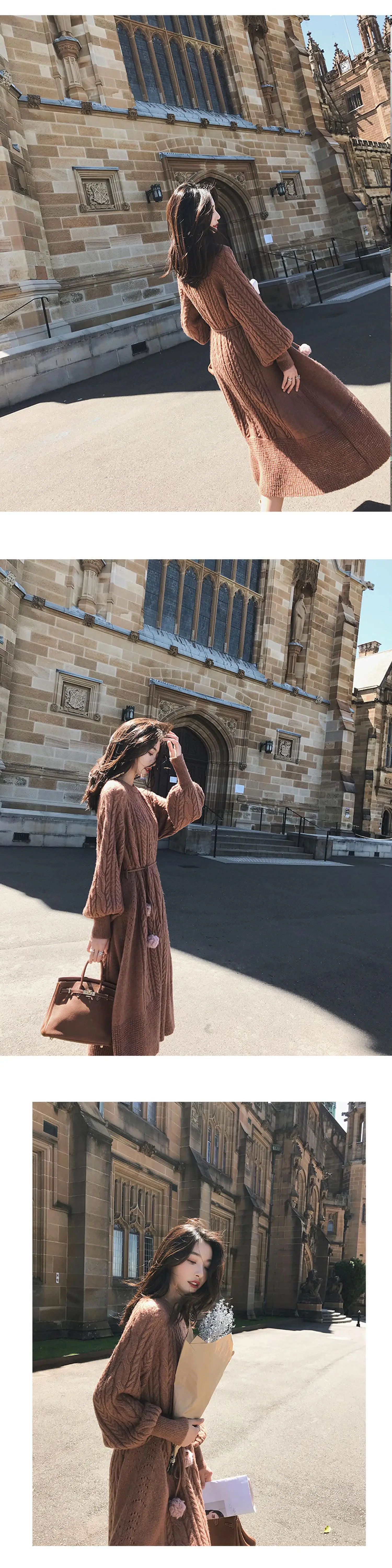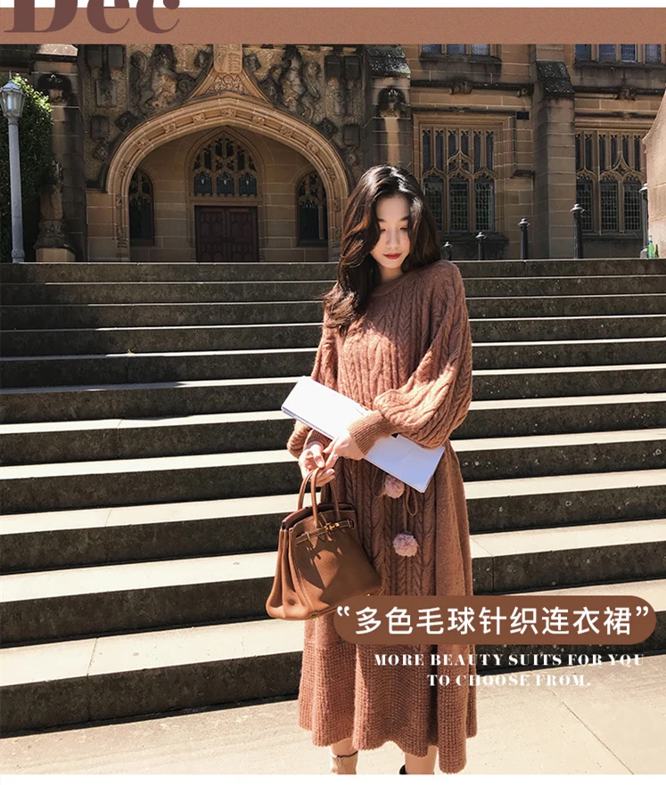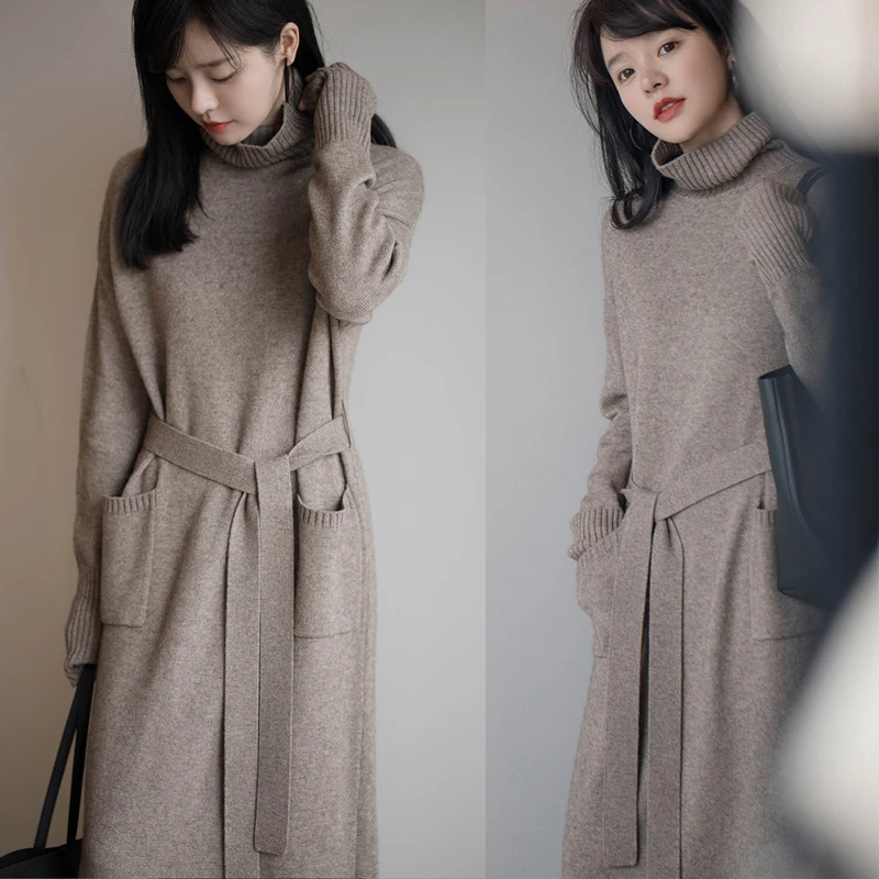 Толстое Зимнее женское платье, осенний свитер, женское платье с длинным рукавом, вязаные платья макси, винтажные платья оверсайз, вязаные винтажные платья