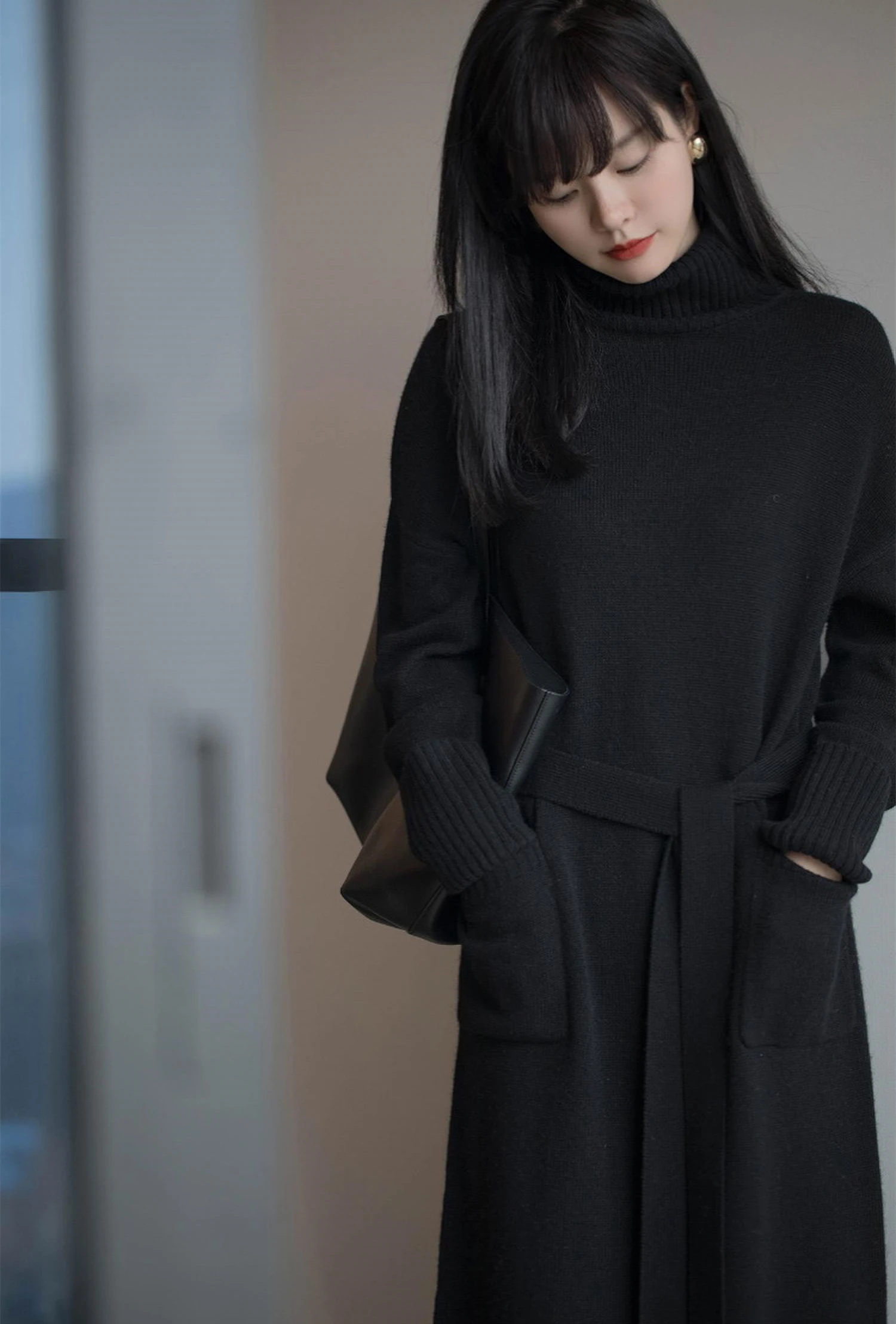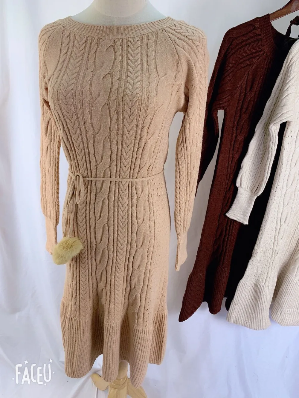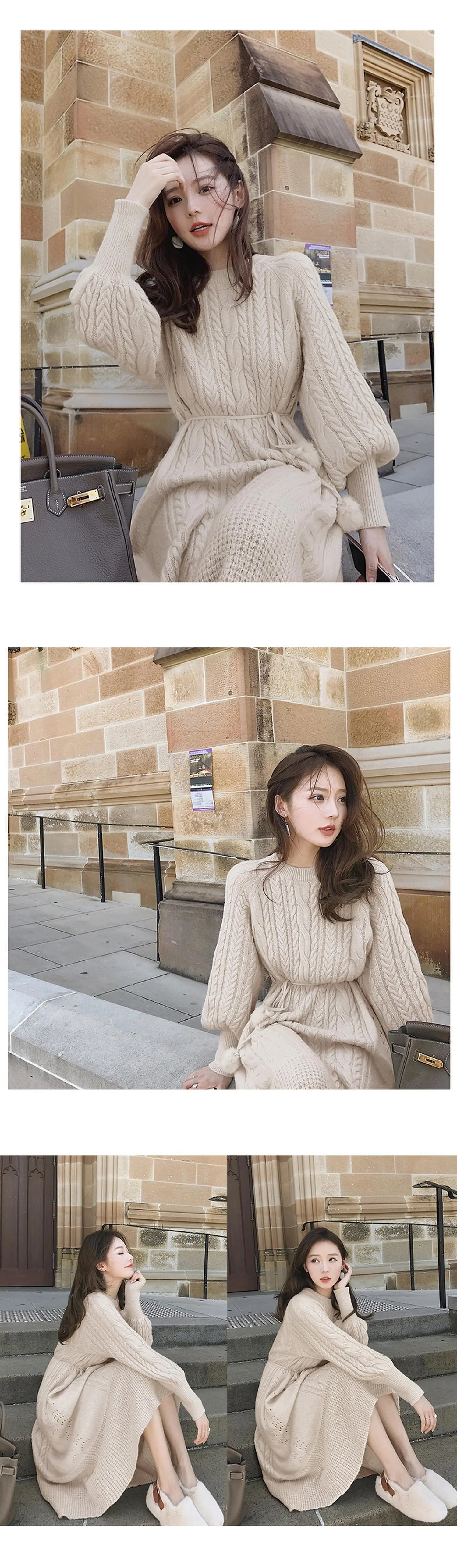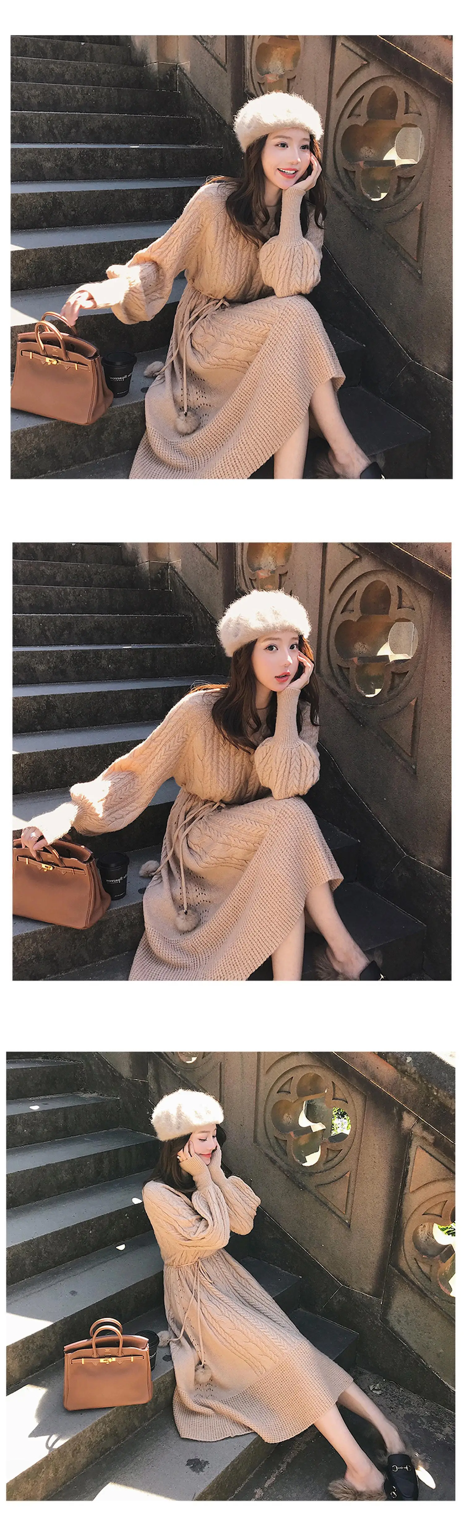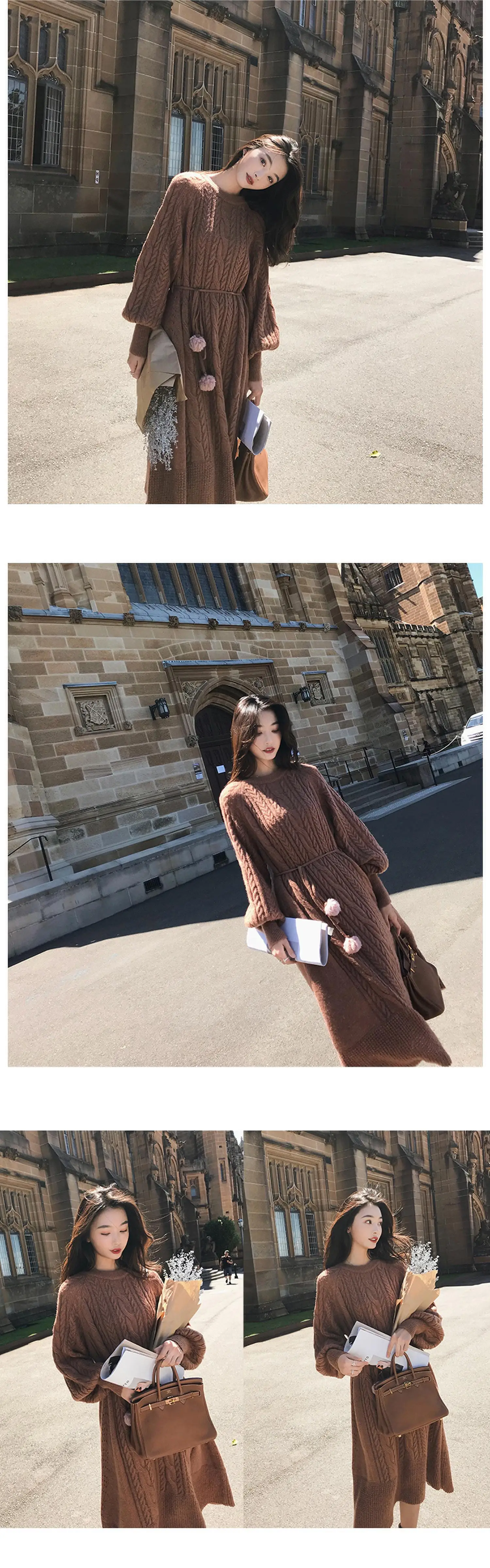 Толстое Зимнее женское платье, осенний свитер, женское платье с длинным рукавом, вязаные платья макси, винтажные платья оверсайз, вязаные винтажные платья