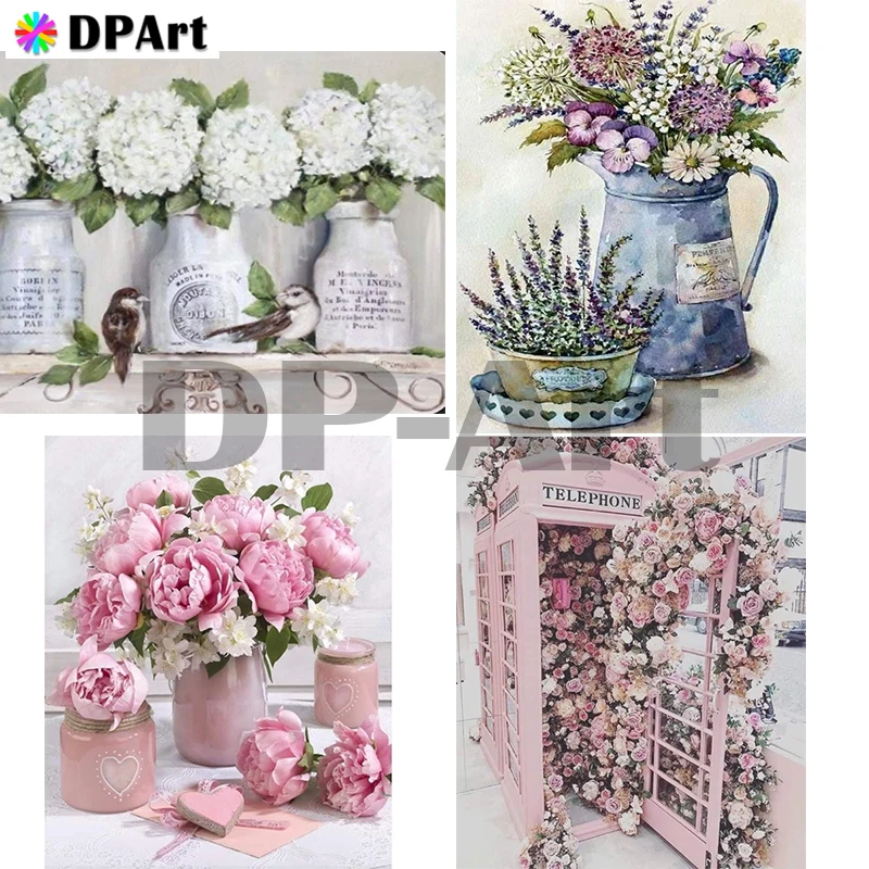 Алмазная 5D картина, полноразмернаякруглая ваза с алмазами, Цветочная 5D Вышивка, картина, картина, настенное искусство, декор M1729