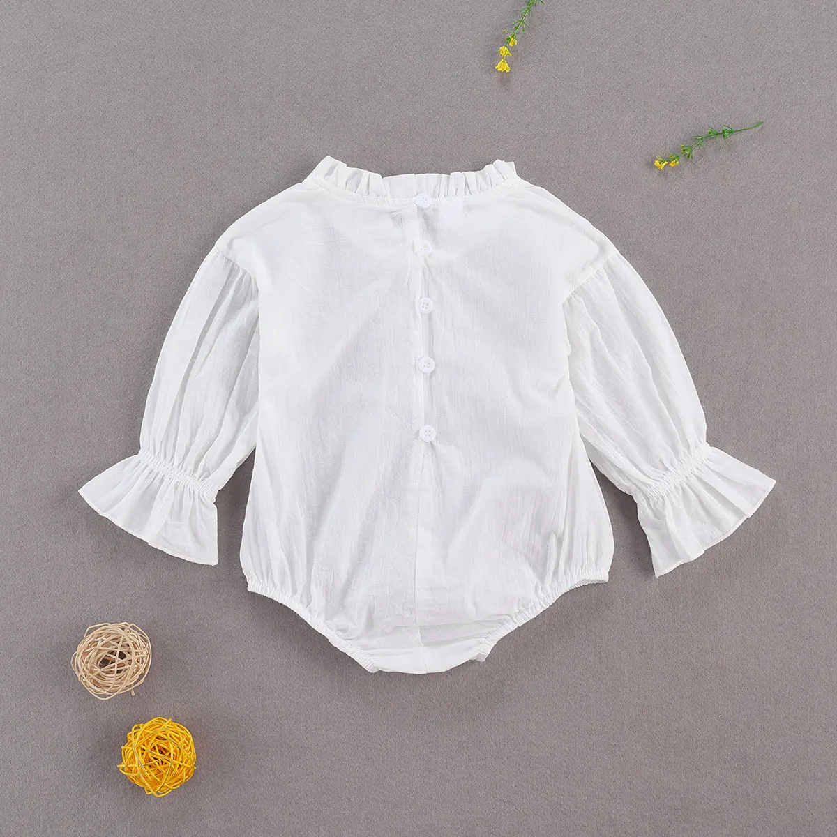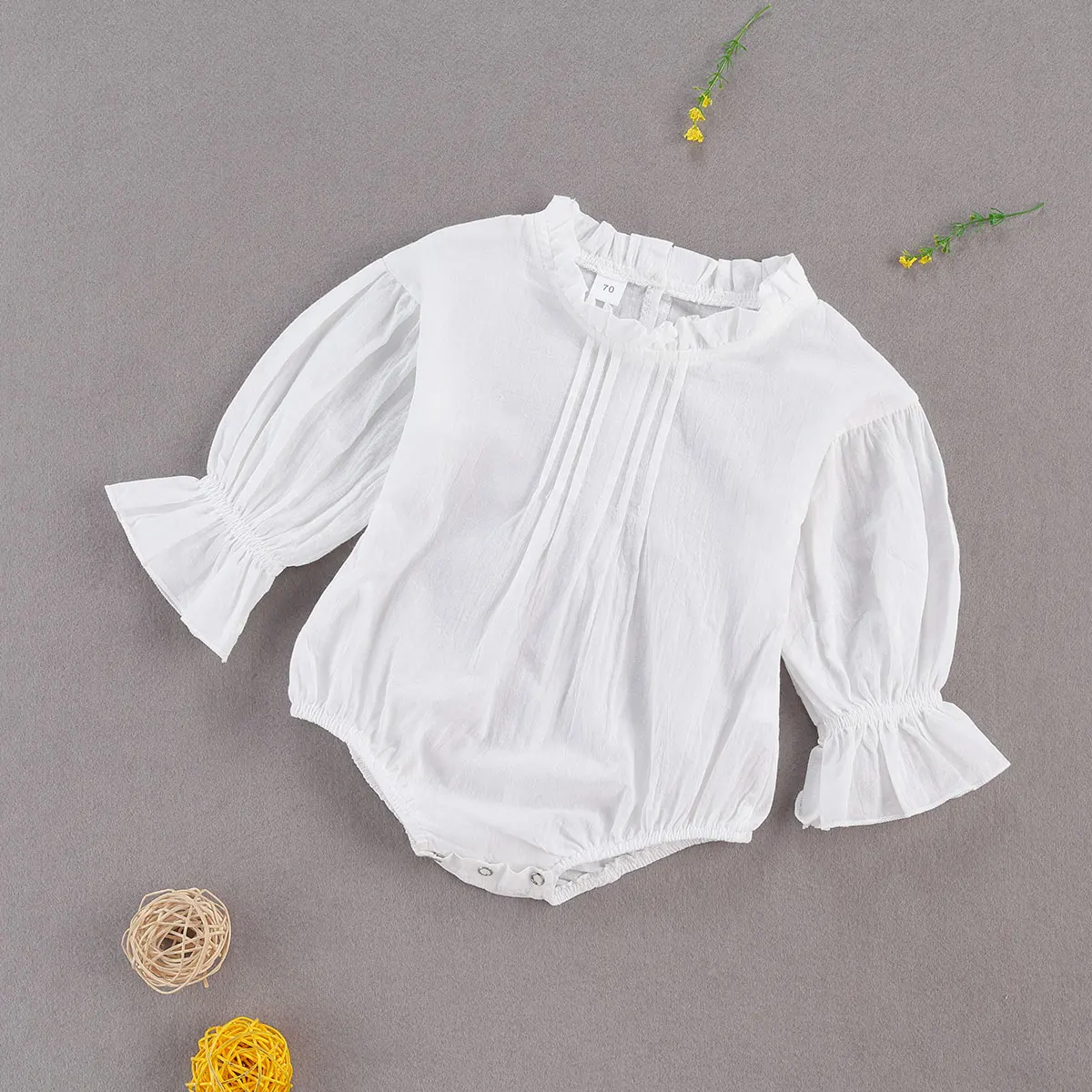 FOCUSNORMоднотонный кружевной комбинезон для маленьких девочек 0-24 месяцев; Осенний комбинезон принцессы с длинными рукавами и оборками и круглым вырезом